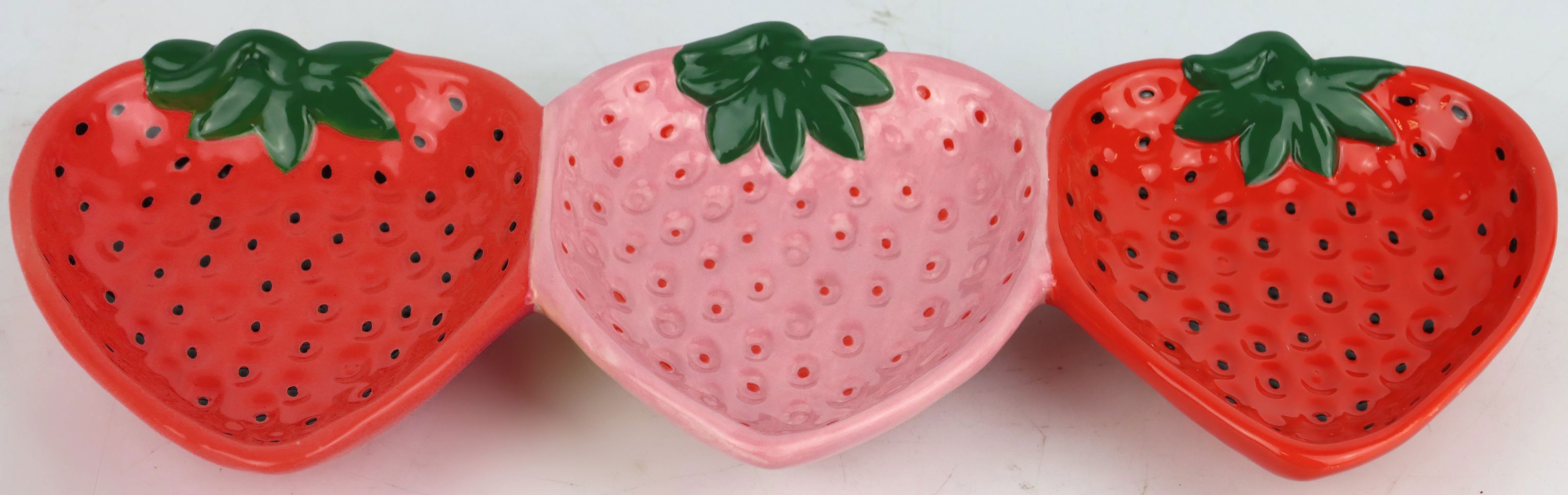 Take the opportunity to offer your customers a product that impresses in terms of both design and quality. The tripple bowl is ideal for promotions around the spring/summer season and can be used in a variety of sales concepts. Let this ceramic piece be the talking point of your next sales campaign and bring summer freshness into your customer areas with the "STRAWBERRY" tripple bowl.