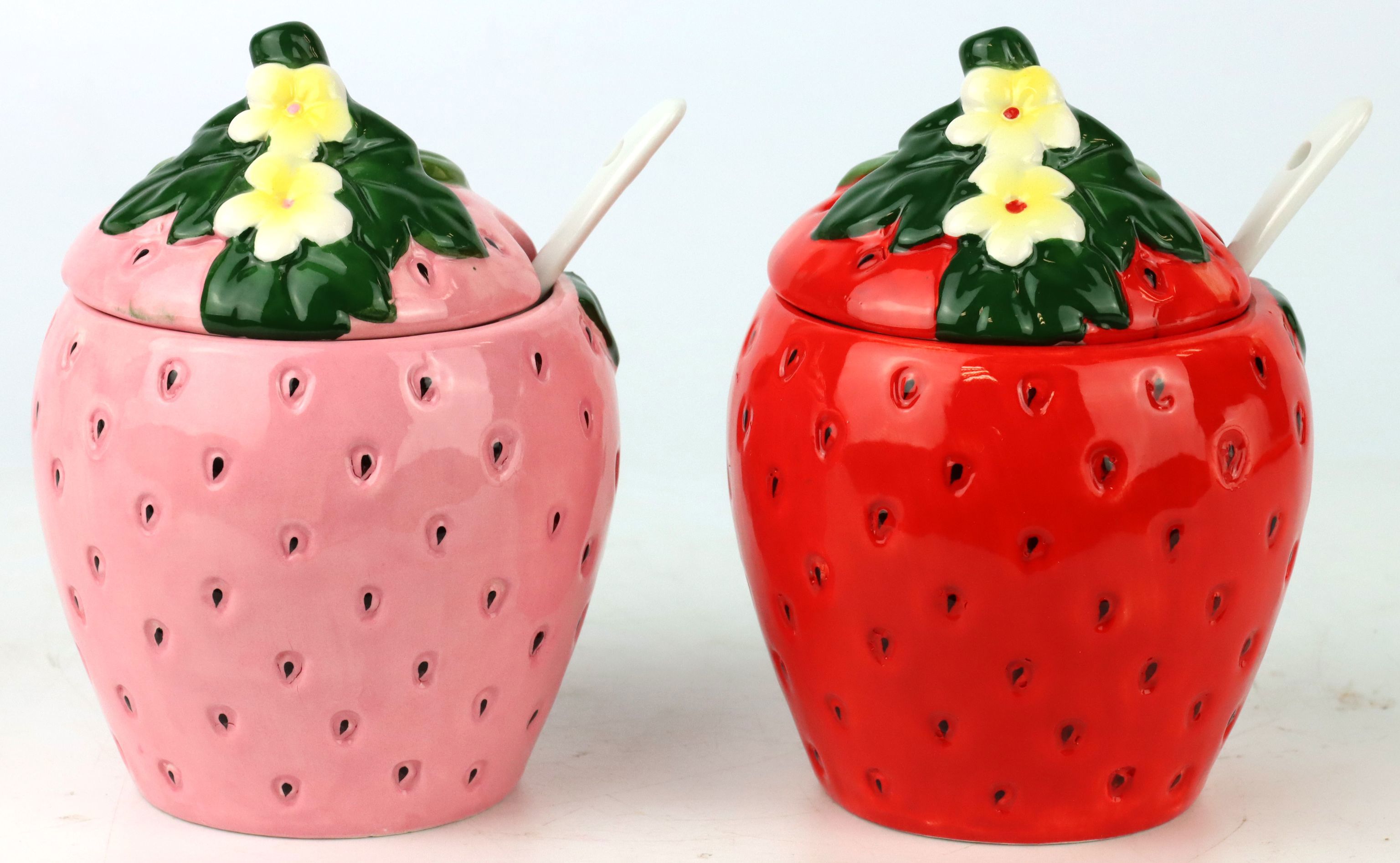 Discover our enchanting set of lidded tins in strawberry design, consisting of two high-quality ceramic tins that will add a fresh highlight to your assortment in stationary retail. These unique ceramic jars, with the item number 4721 and the affectionate name "DECKELDOSEN M.LÖF. 'STRAWBERRY' S/2", are the perfect addition to your home and lifestyle range in spring and summer. With their appealing strawberry motif, they will attract the attention of your customers and add a personalised touch to any room.