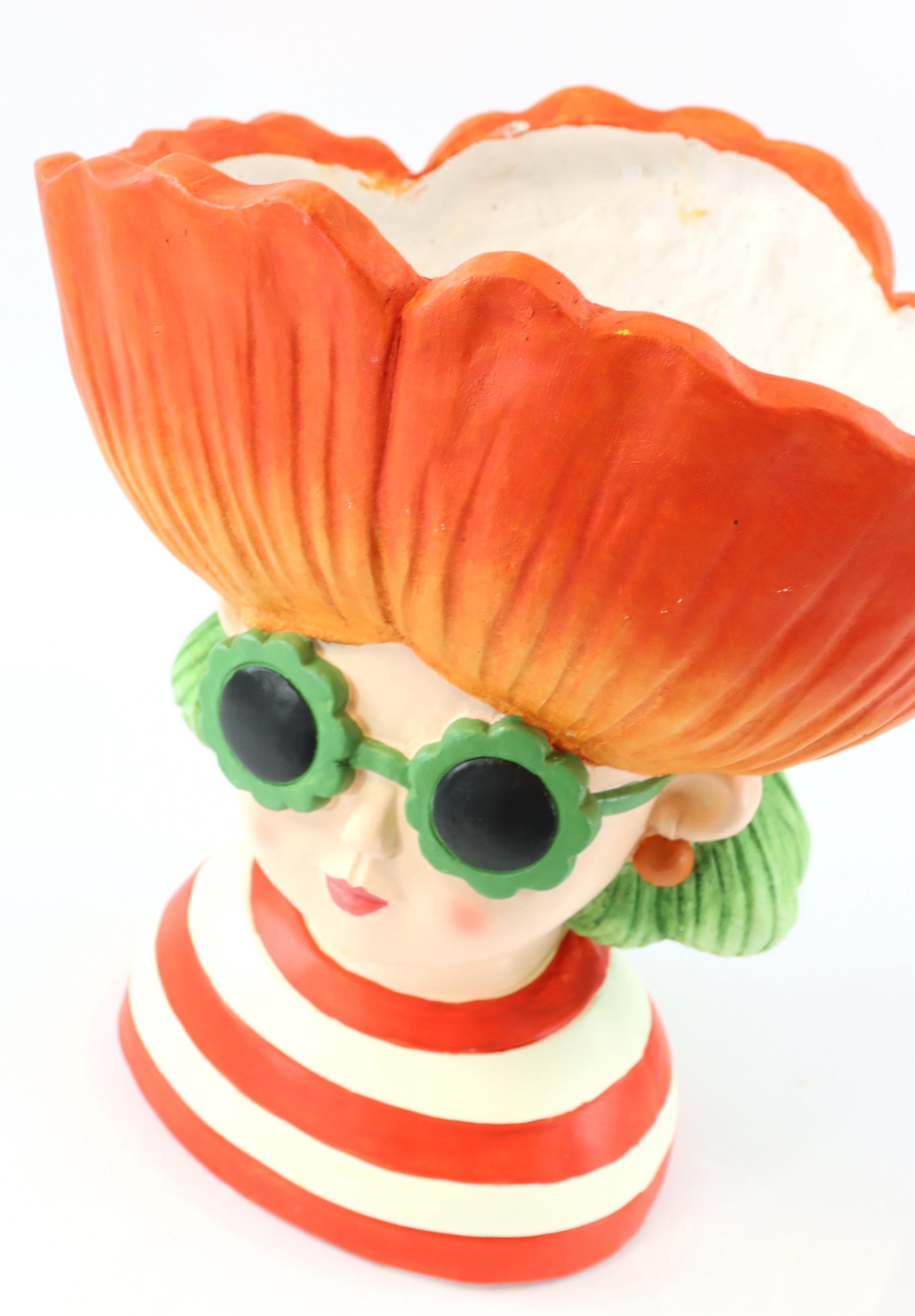 Experience the beauty and elegance of the "POPPY GIRL" planter, a unique decorative highlight for your shop or showroom. This artistically designed planter combines functional use with aesthetic design in a fascinating way. The "POPPY GIRL" is an impressive plant object in the shape of a woman's head with a magnificent red flower, perfectly reflecting the freshness and vitality of the spring/summer season.