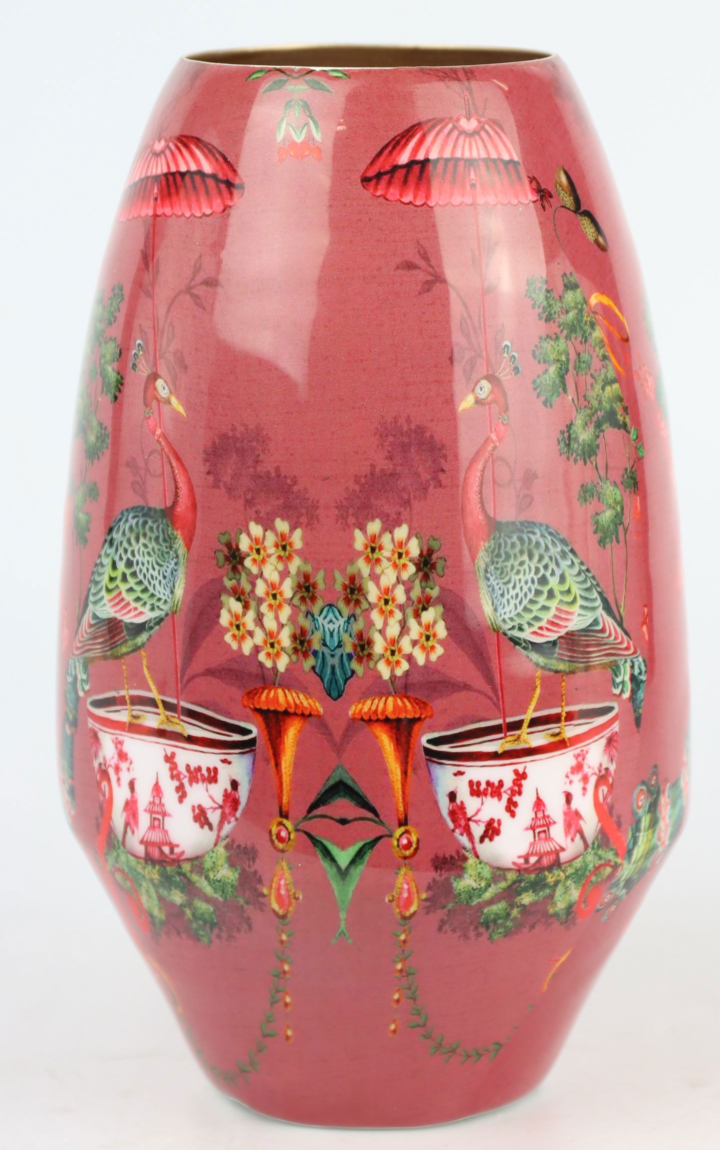 Discover the fascinating world of Asian design with our "Asian Fauna" vase. This exquisite home accessory contains the essence of Far Eastern elegance and transforms any interior into a stylish retreat. With its artfully designed peacock motif in vibrant red, the vase attracts everyone's attention and adds a touch of extravagance and sophistication to your interior design.