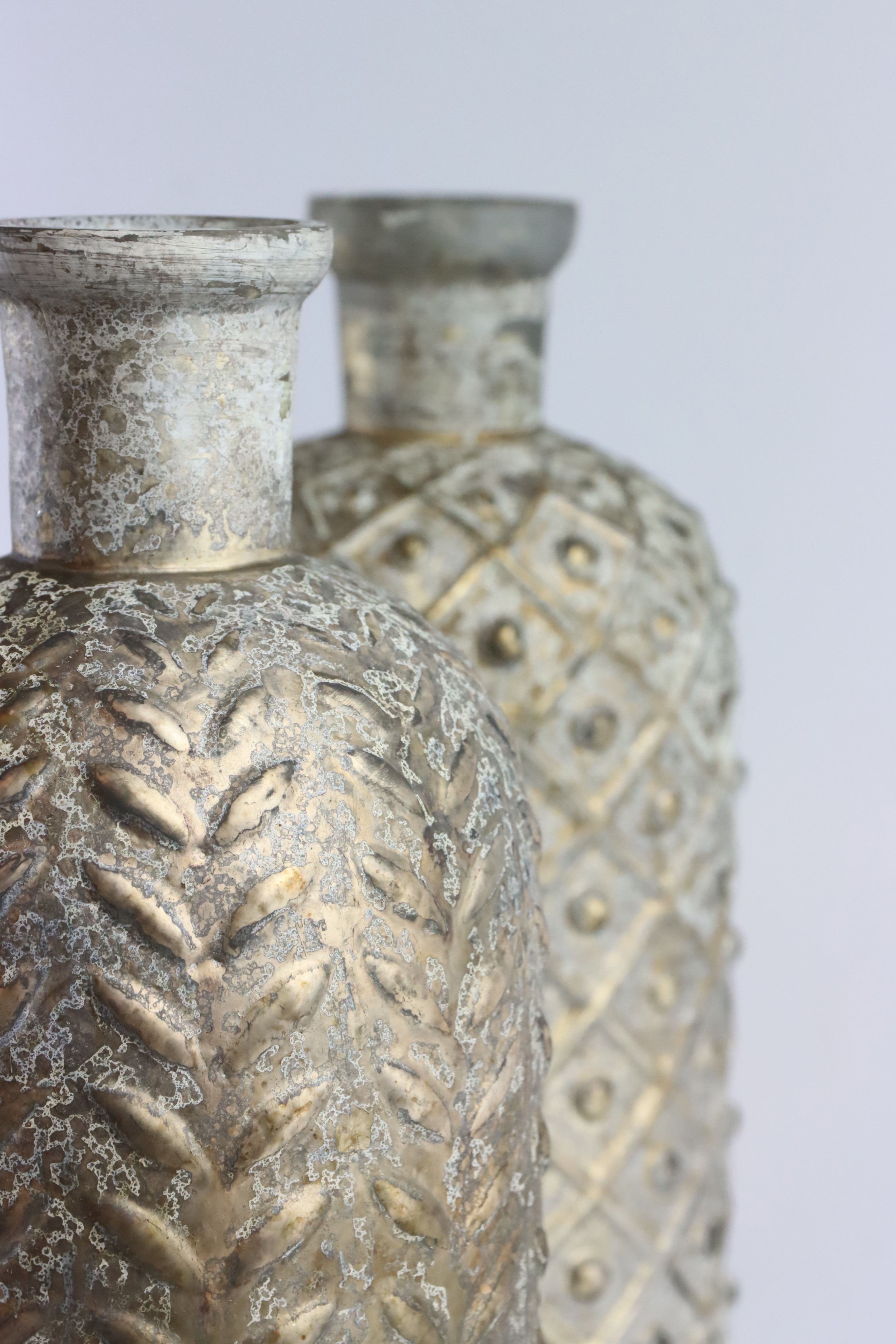Antique elements have a very special charm and bring a unique flair to your living atmosphere. That is why our designers have created the "Loire" S/2 bottle vases with an antique finish. This detail gives the vases a nostalgic charm and makes them appear modern and timeless at the same time.