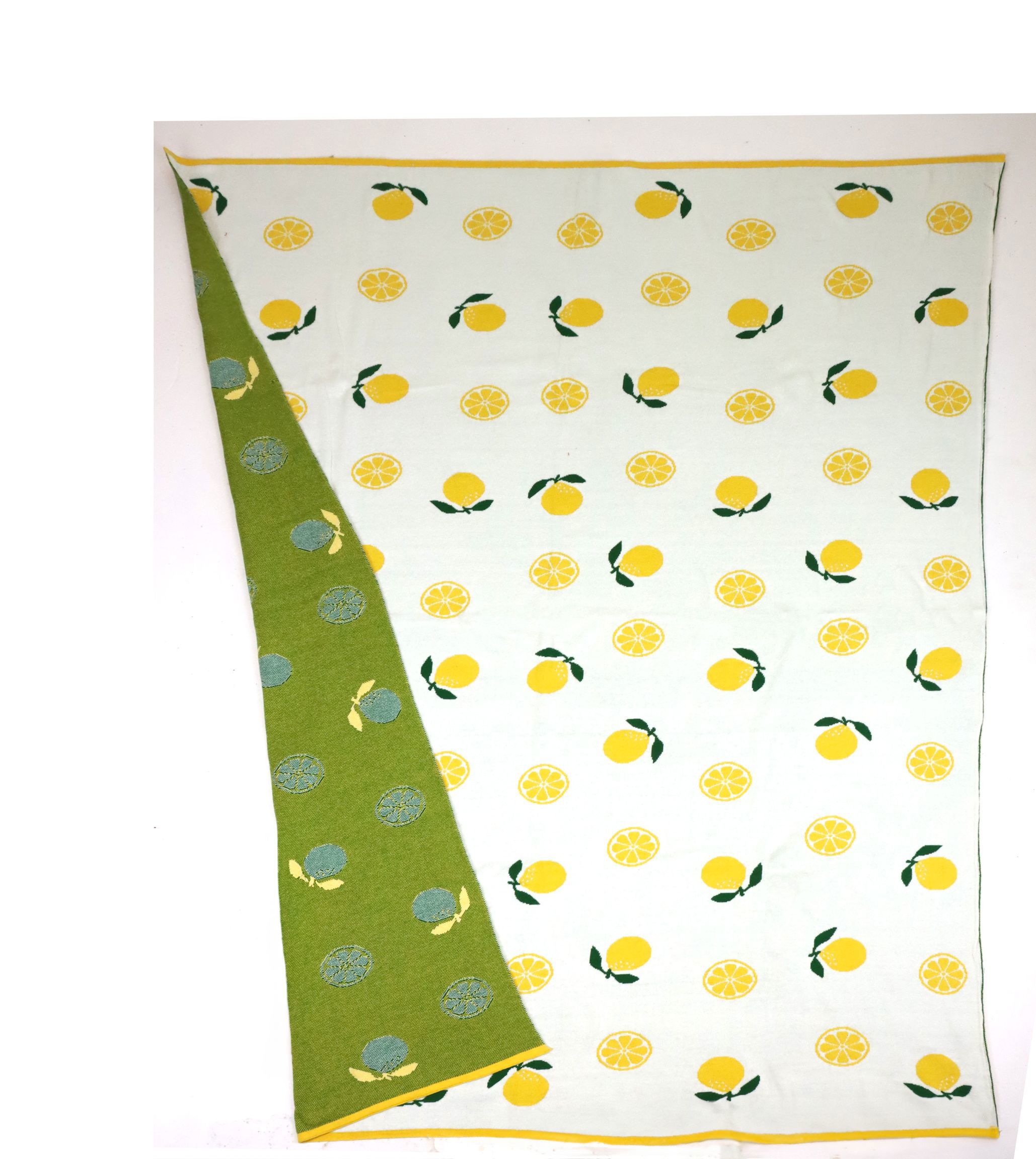 Bring a breath of fresh air into your interior with the exclusive "Lemon" knitted blanket. This stunning blanket is an essential home accessory for spring and summer and is aimed at the discerning stationary retailer in the home and lifestyle sector. With its playful lemon motif and practical reversible design in white and yellow, it adds a cheerful accent to any room.