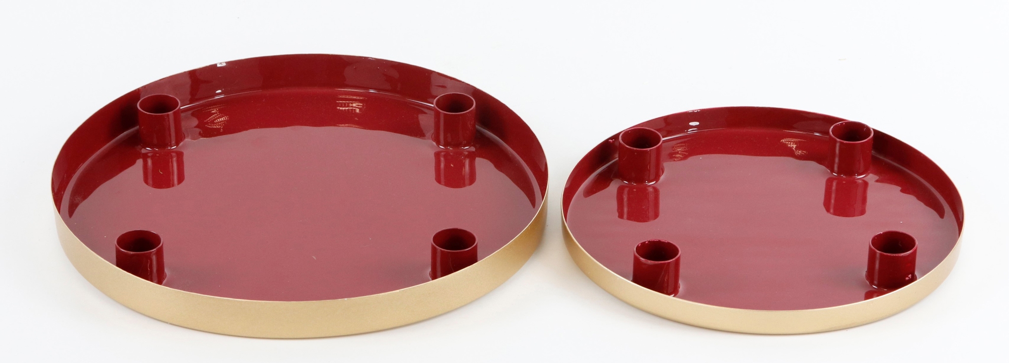 Discover the elegant "Deluxe" candle bowls in a 2-piece set, exclusively for the home and lifestyle retail sector. These exquisite candle bowls are the perfect addition to your autumn and winter decorations and create a warm and inviting atmosphere that will delight your customers. The set consists of two high-quality candle bowls made of robust metal in a sophisticated red colour, ideal for setting special accents in any room.
