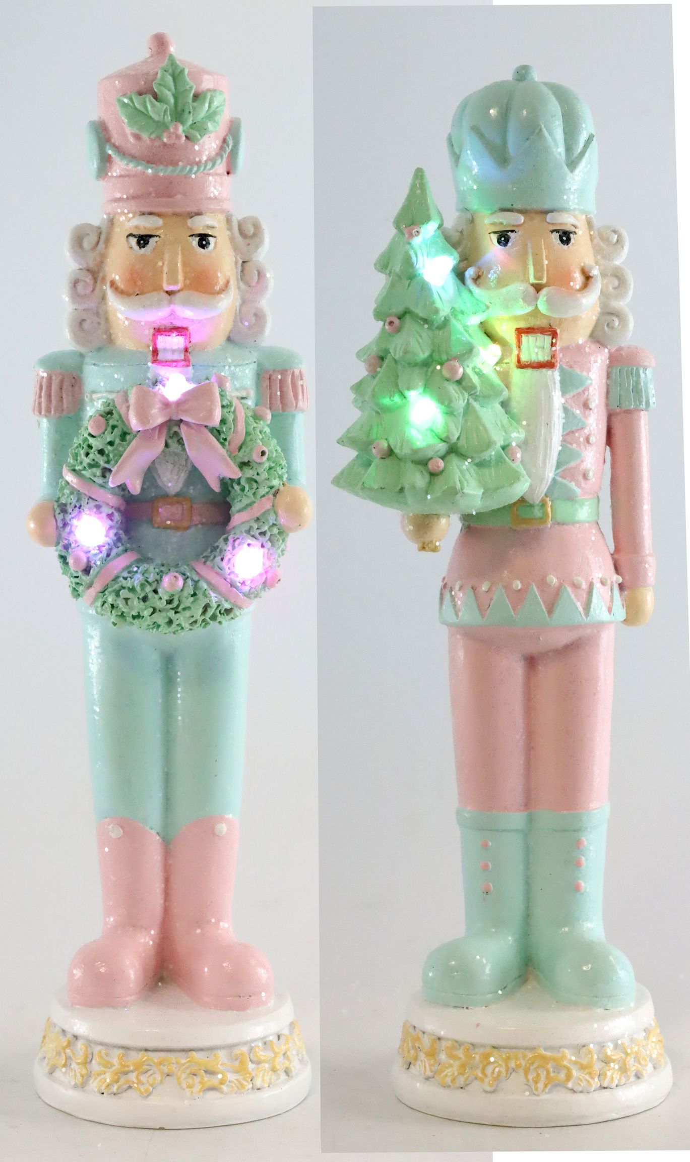 - Two nutcracker figurines made of high-quality polyresin in pastel turquoise and pink
