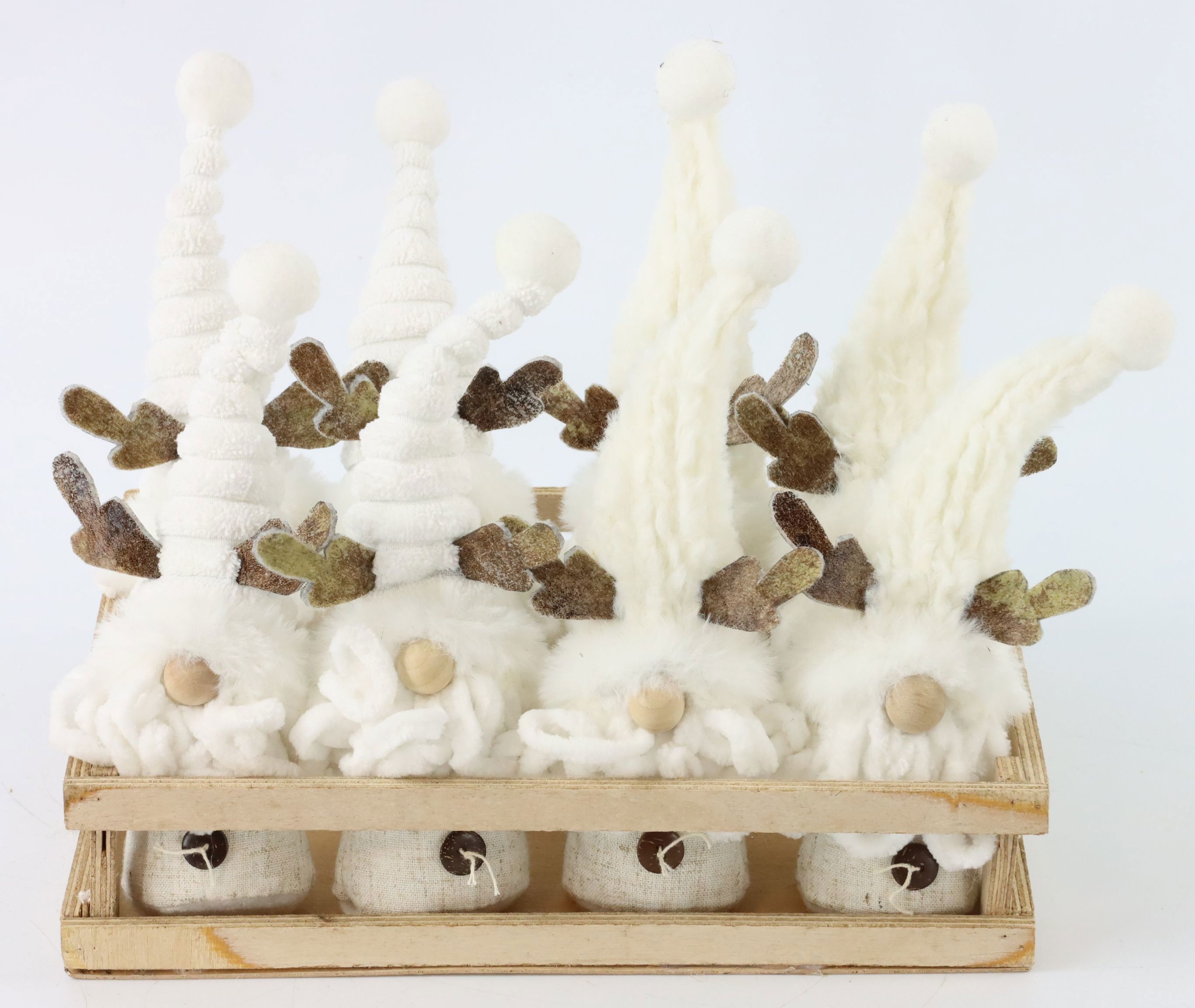 Measuring around 20 cm in size, they fit perfectly on any table, shelf or window sill and exude their unique Christmassy charm. The set consists of eight differently designed figurines, all of which pose standing and enchant with their red Santa hats and carefully crafted details. Add an individual accent to your Christmas decorations with our NIKOLAUSELCHE IN BOX - whether in stationary retail or at the end customer's home.