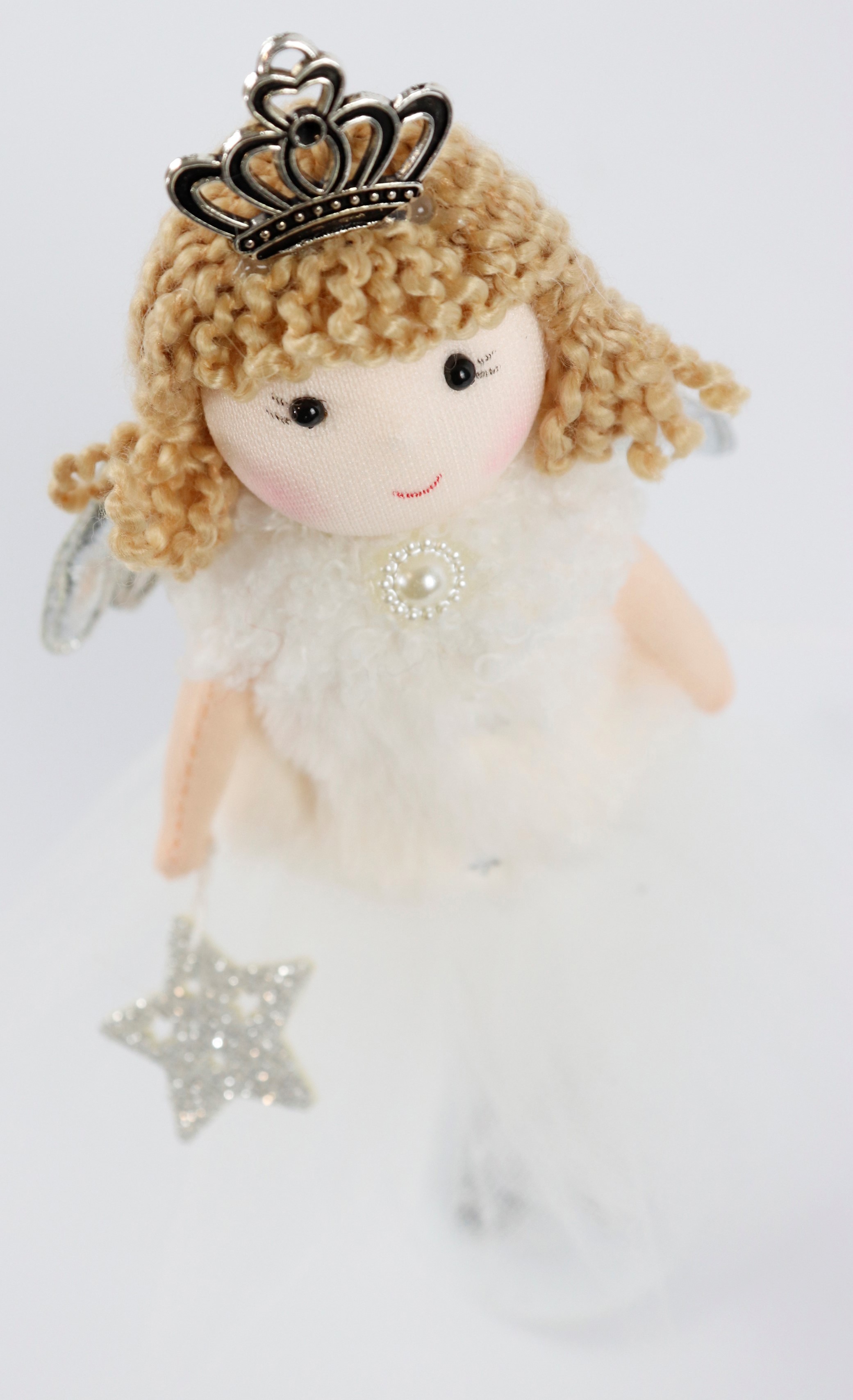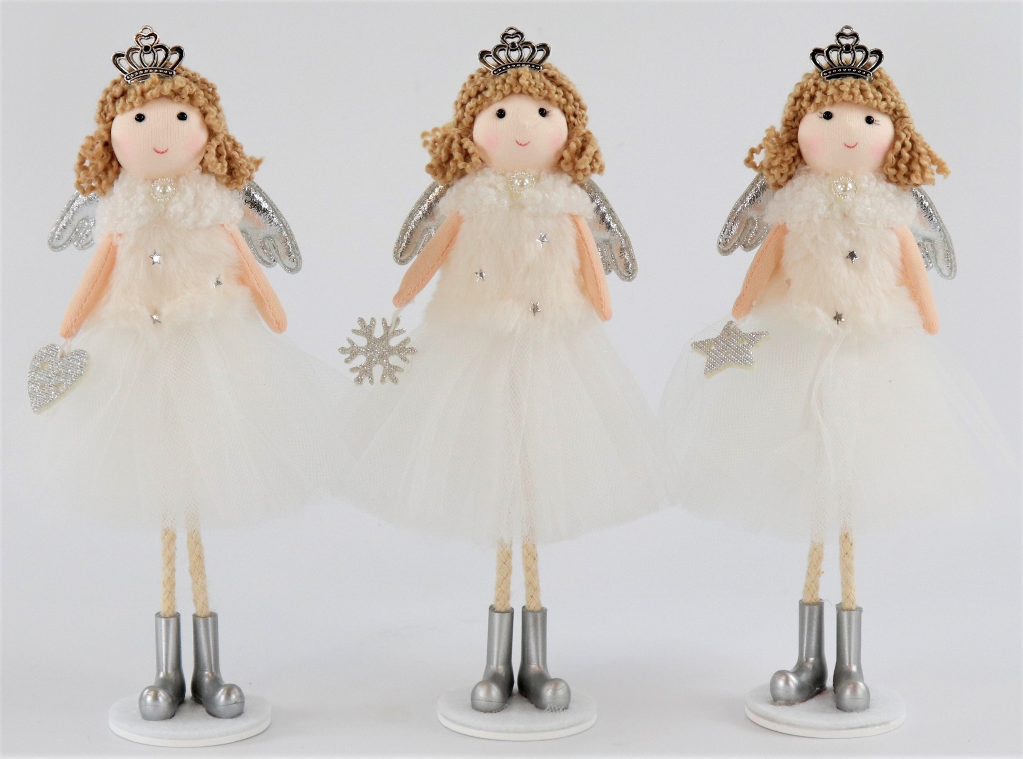 The "Angeli" crown angels are made from a stylish combination of cotton, polyester and faux fur, which ensures both a luxurious look and a pleasant feel. The angel figurines are in a pure white colour that radiates peace and tranquillity and brings the magic of Christmas into every home. Each angel wears a crown that integrates perfectly into the design and emphasises the heavenly theme of this decoration.