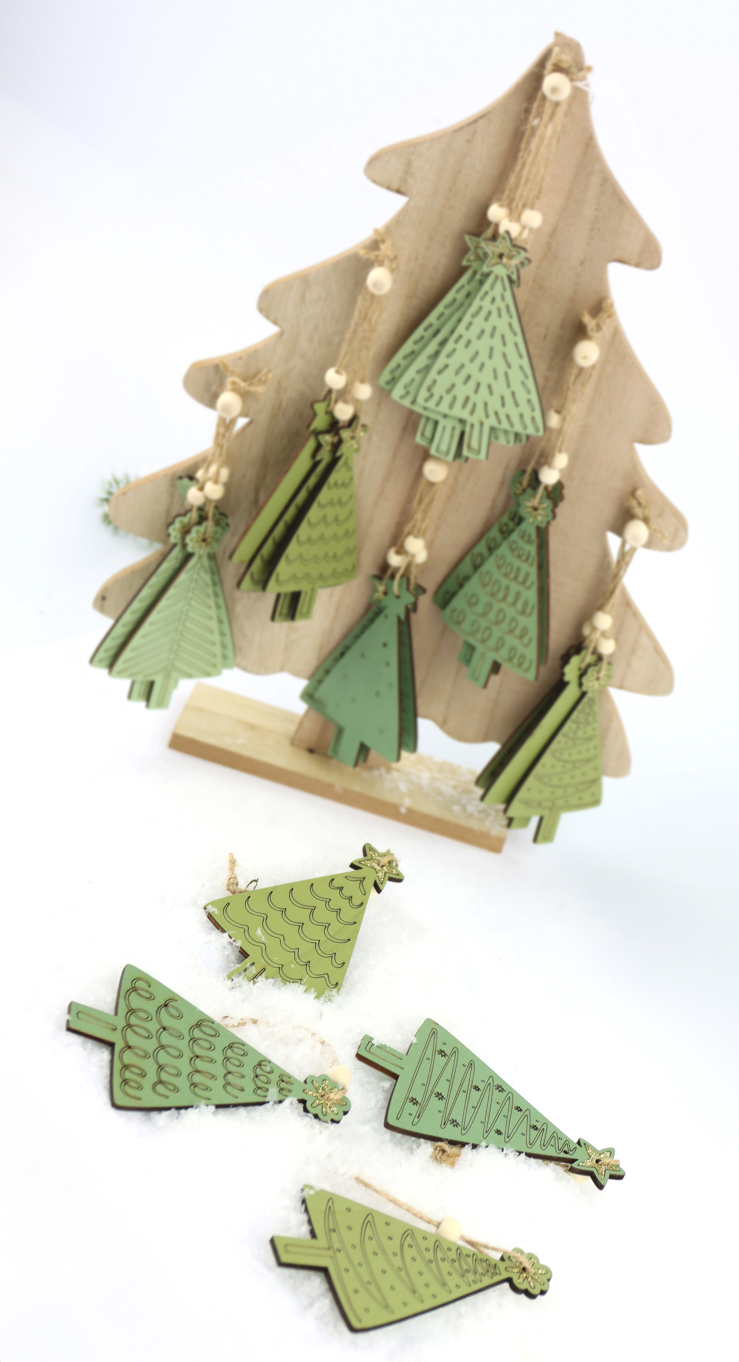 The set also contains 25 carefully designed hangers that pick up on the motif of silver fir trees. These decorative pieces are not only an aesthetic delight, but also a leitmotif for your Christmas presentation. The hangers are made of sturdy wood and decorated with great attention to detail to celebrate the festive season and enhance the ambience of your store.