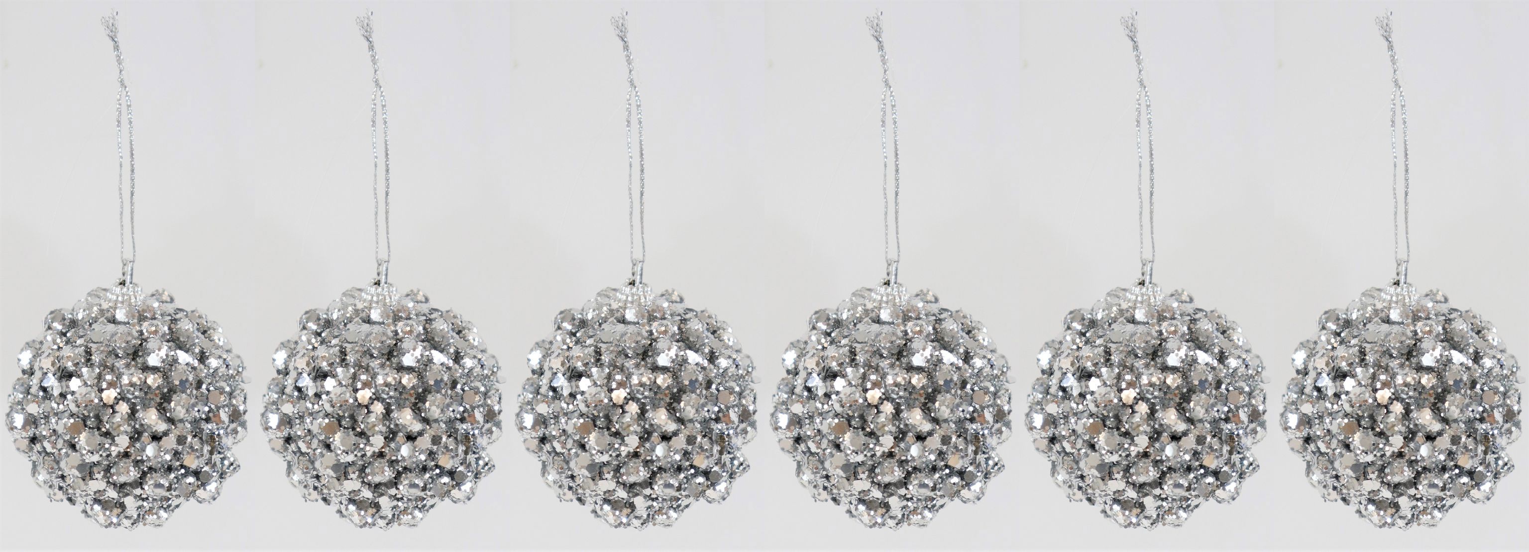 ENDiscover the "SPARKLE" set with six Christmas baubles with our article number 2403. These are exclusive decorative items that make every Christmas special. The stylishly designed baubles are made from high-quality polystyrene plastic in an elegant silver colour and will not only add a sparkling highlight to your Christmas tree, but also to your entire winter living room decorations.
