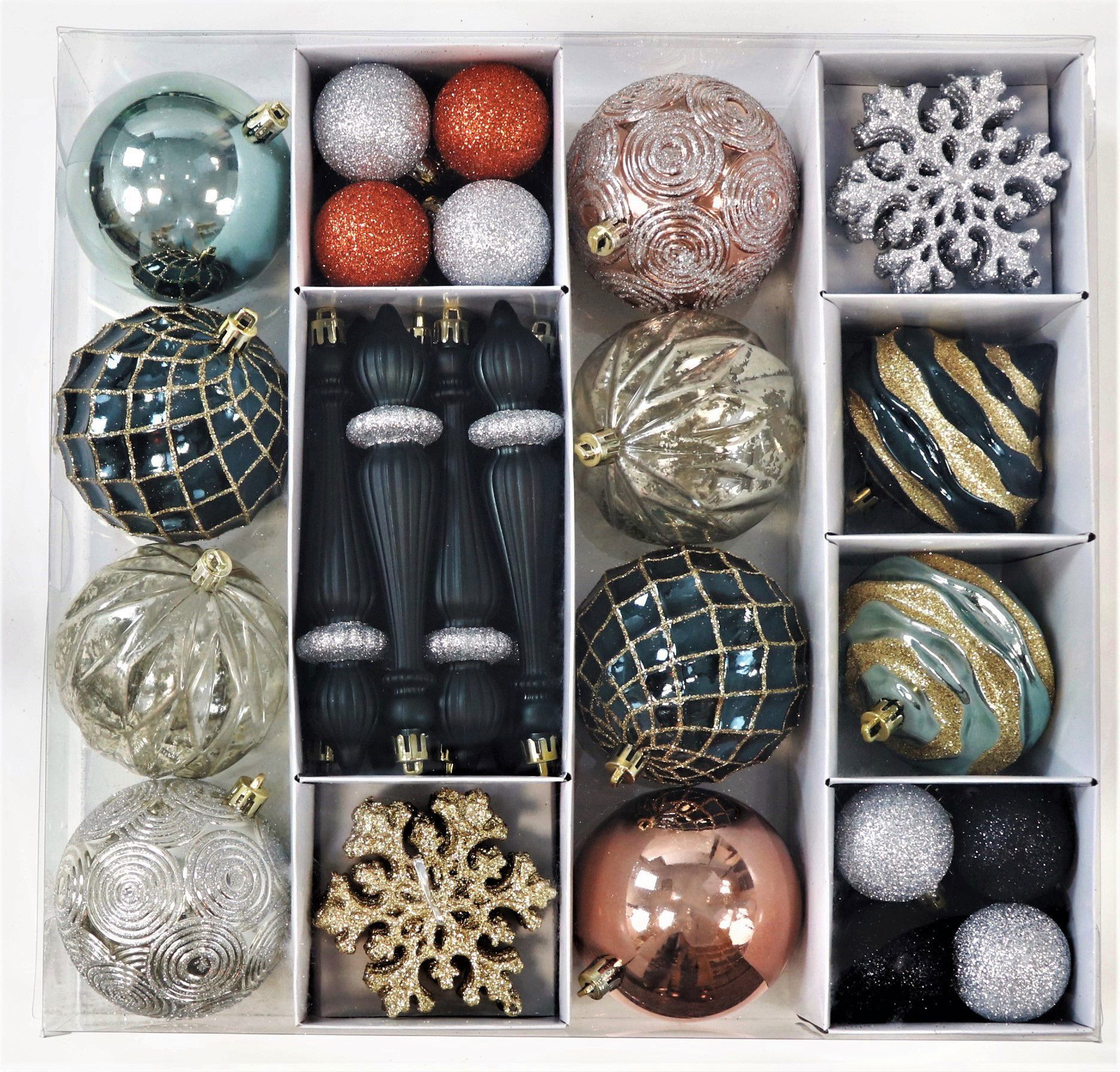 The festive season is just around the corner and it's time to brighten up your shop space with atmospheric decorations. The DISPLAYBOX "MAGIC CHRISTMAS" S/50 is just the thing to make your customers' hearts beat faster. This 50-piece set offers an exquisite selection of Christmas decorations in the elegant colours of green and gold. Designed for the discerning home and lifestyle retailer, this carefully curated collection will add a magical festive atmosphere to your shop.