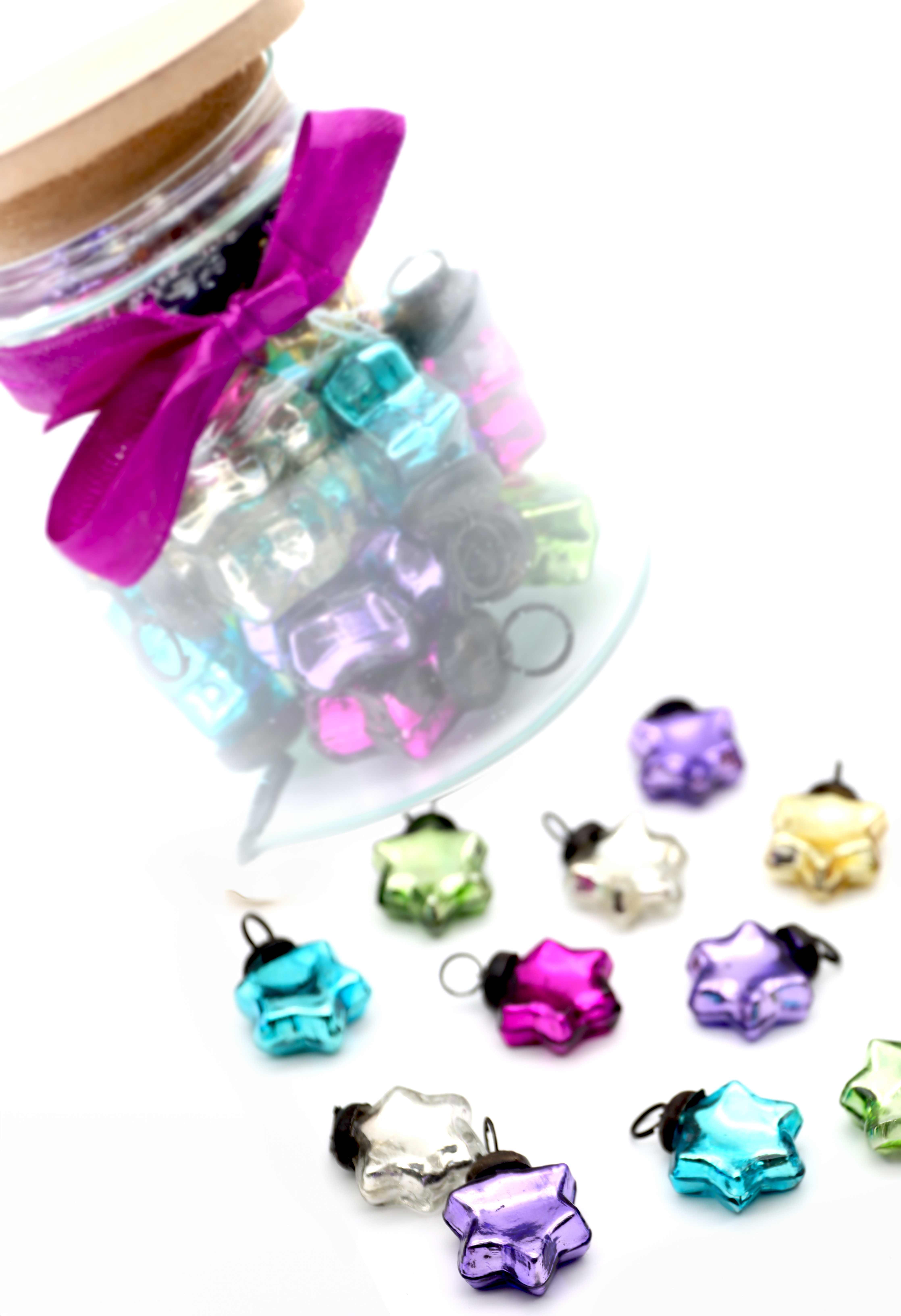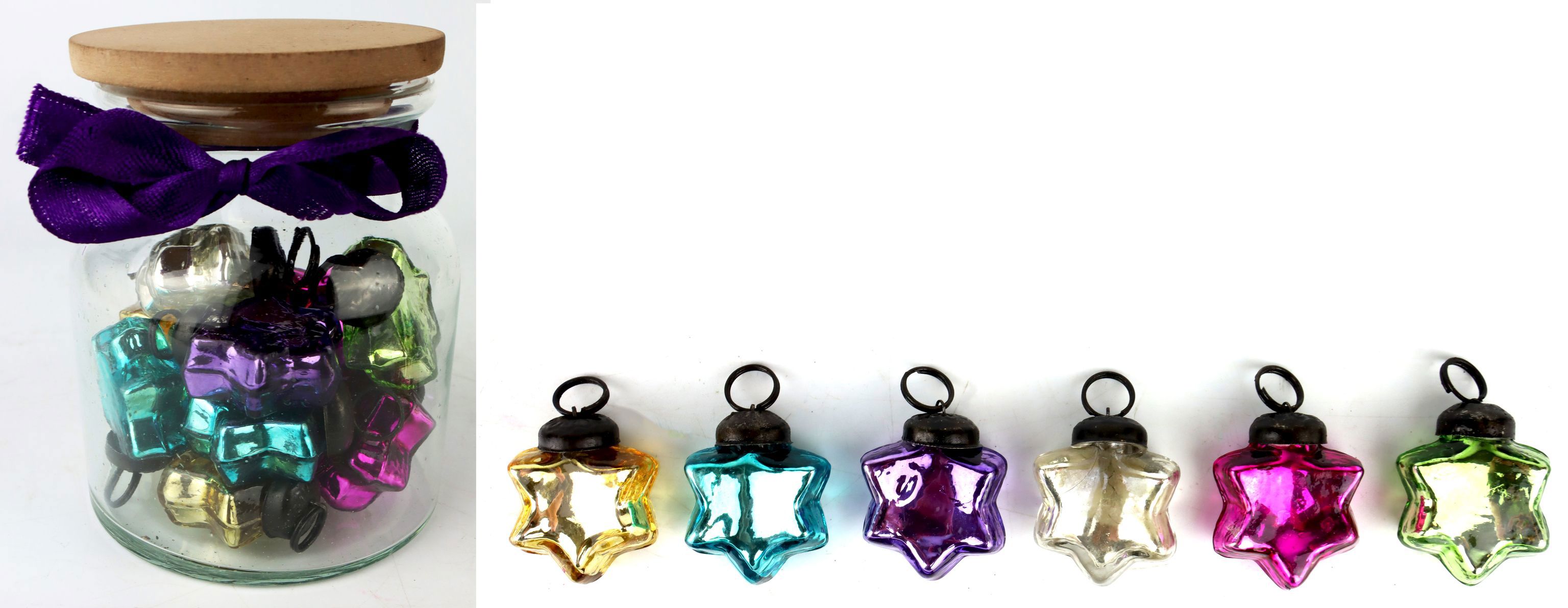 Each set contains a carefully selected colour palette of yellow, turquoise, purple, white, pink and green. These colours give the pendants an enchanting touch and make every Christmas tree shine in a dazzling light. Thanks to the transparent glass box in which the stars are supplied, they are also a real eye-catcher in your shop display and easy to present. The glass packaging is not only practical, but also aesthetically pleasing and offers an attractive storage option for your customers.