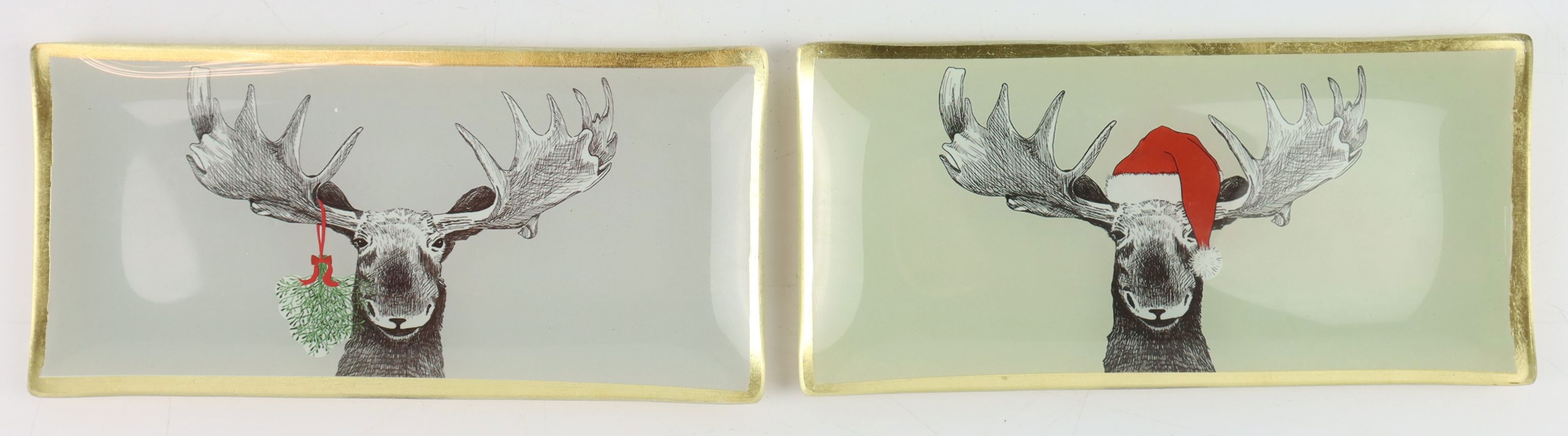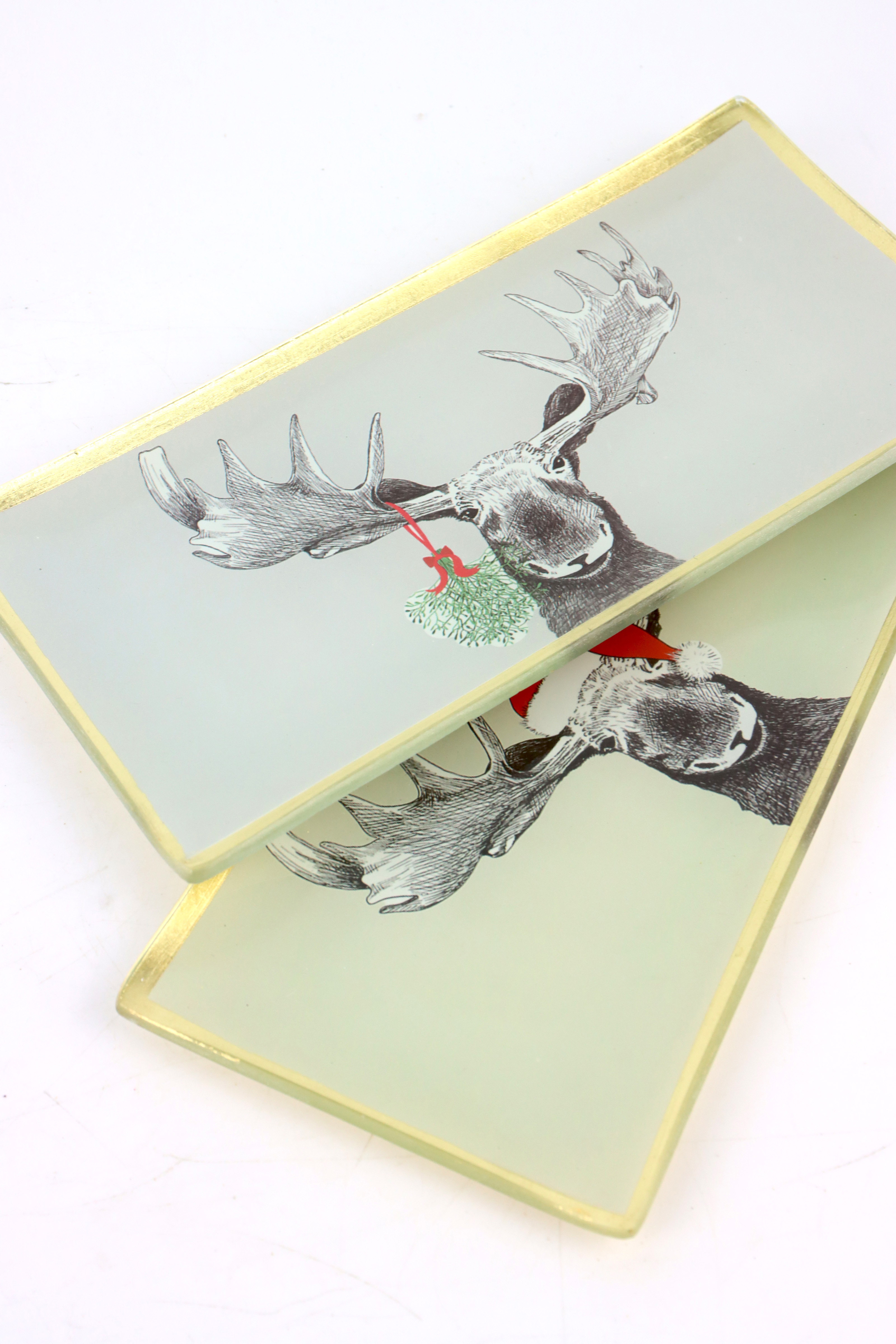 - 2-piece set of rectangular glass plates with a fun moose motif