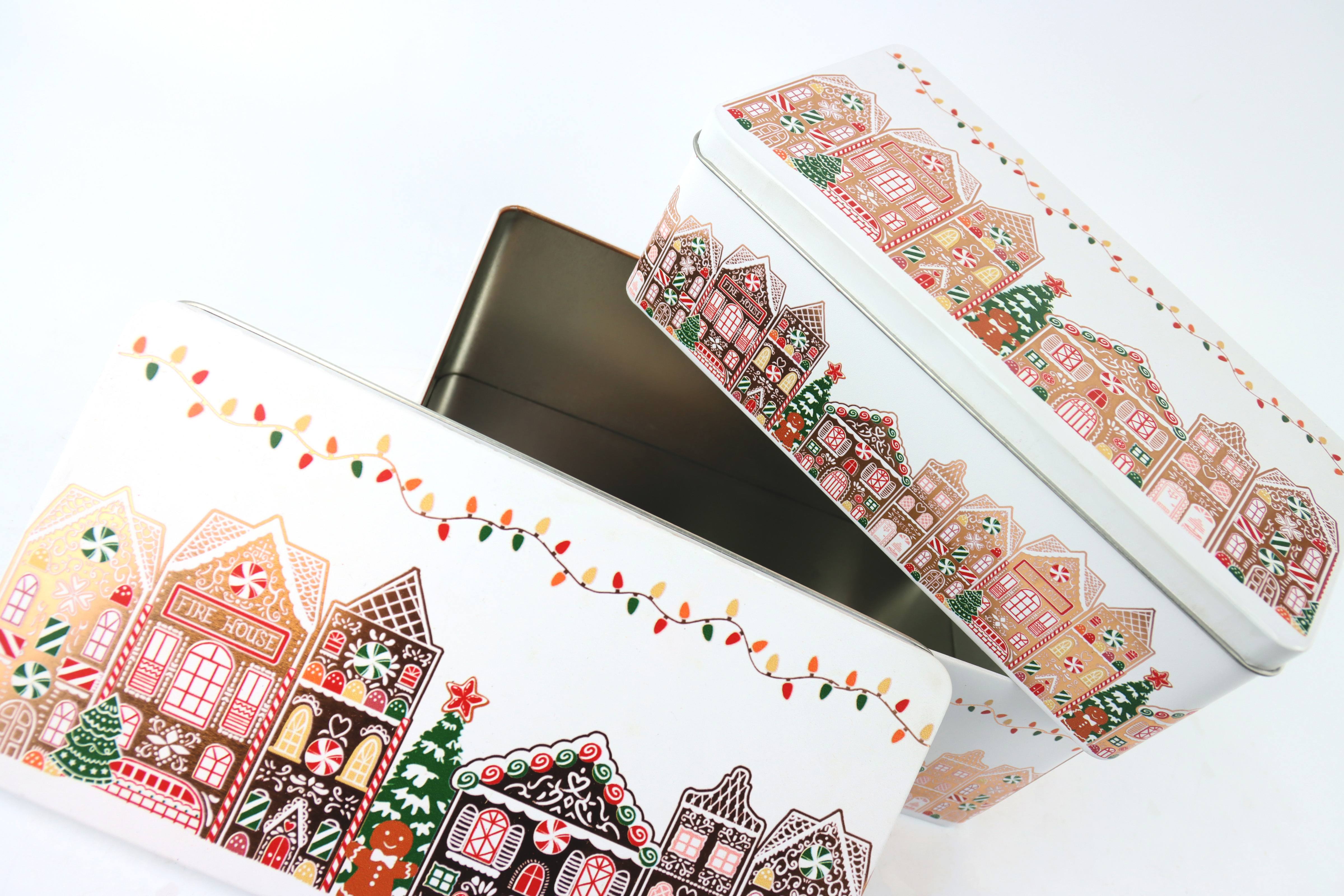 - Two tin cans in a nostalgic gingerbread house design