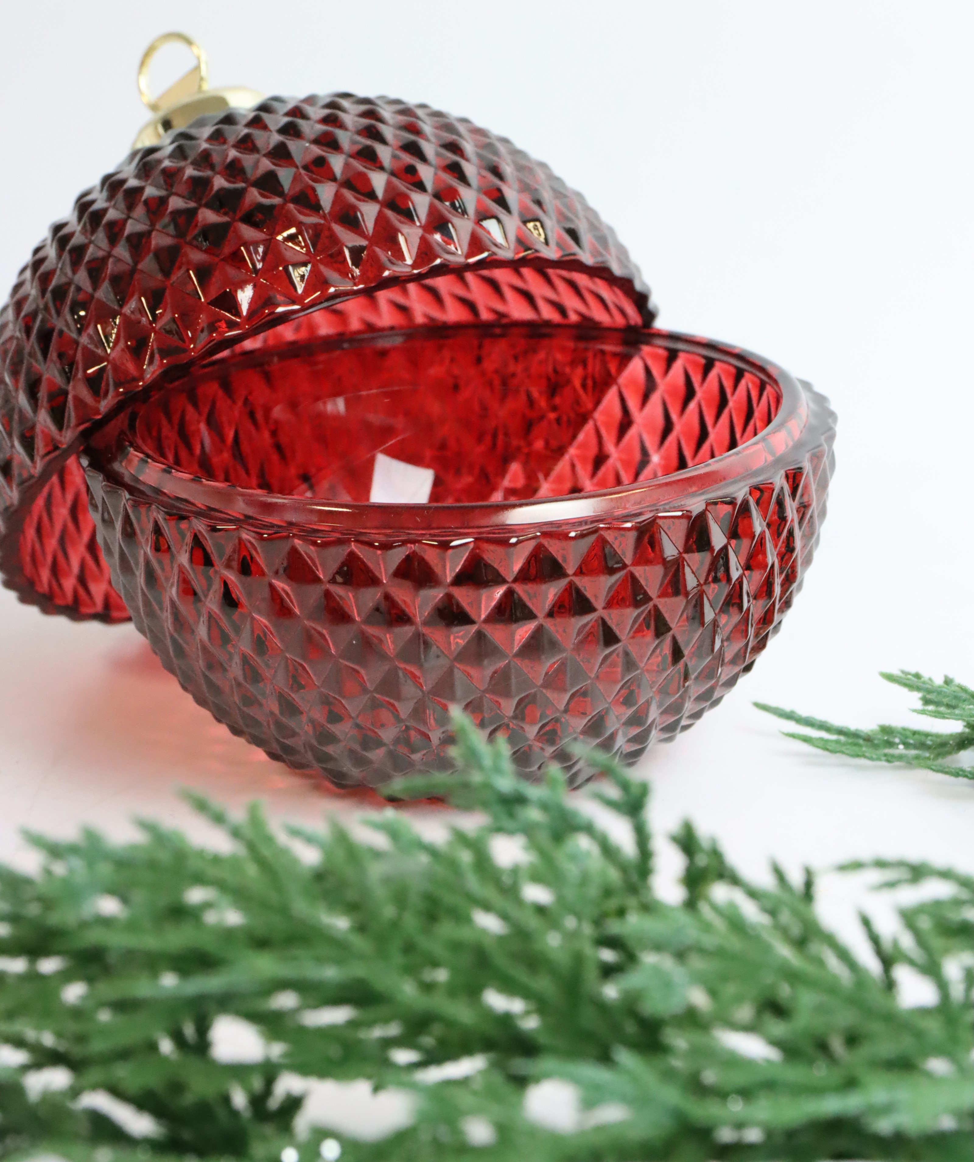 The transparent glass jar is ideal for presenting small surprises or sweet treats in a visually appealing way. Thanks to its clear format, it is quick to fill and easy to clean. The red colouring of the glass makes the contents stand out and gives the decoration an additional festive touch. You can hang the "ChristmasBall" glass jar on a branch, place it on a table or use it as an original Christmas tree decoration. It is sturdy enough to keep its place permanently, even in busy areas.