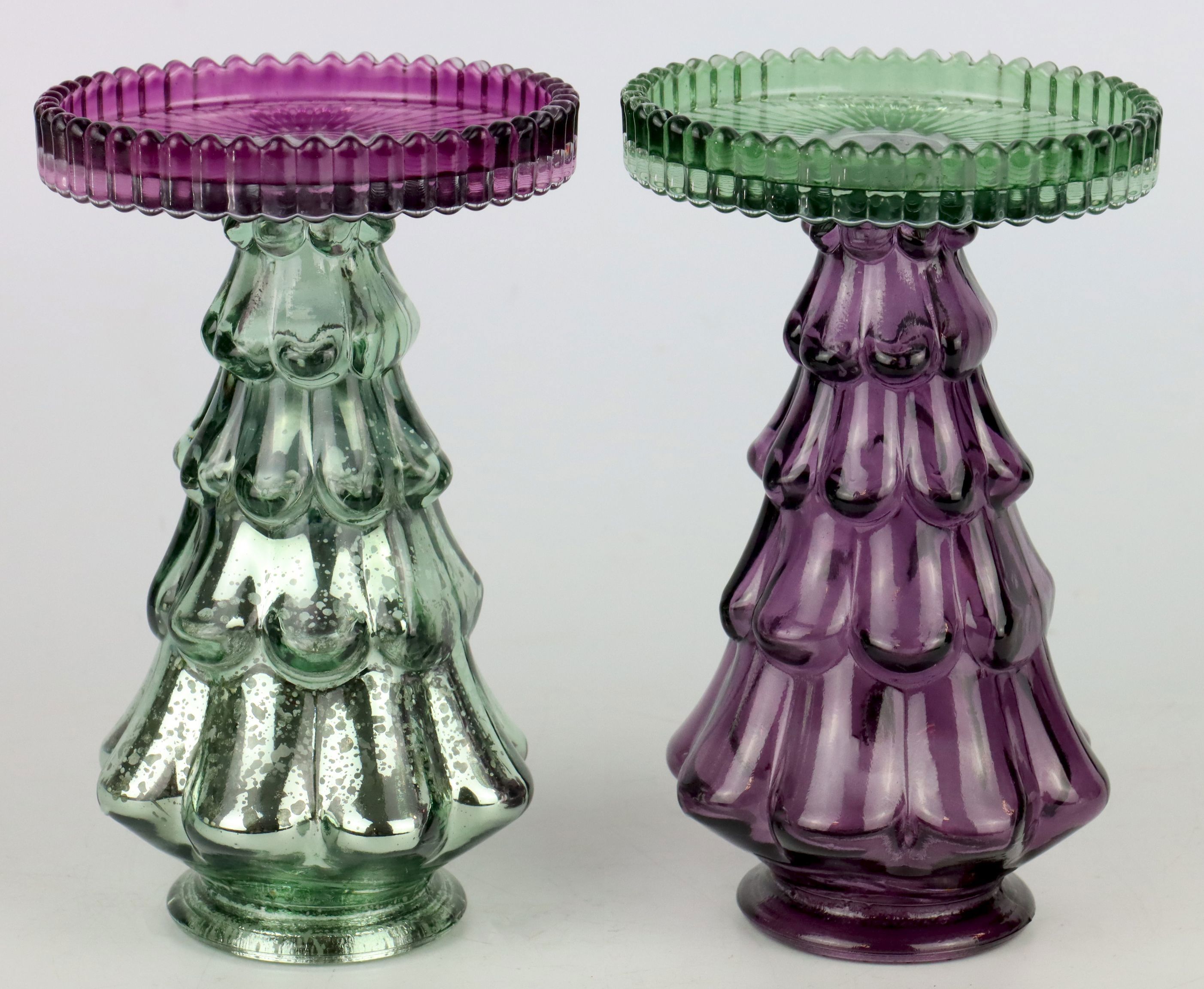 Our two-piece chandelier set, designed in the classic Christmas motifs of purple and green, captures the essence of the festive season and harmonises wonderfully with a variety of Christmas decorations. The stylised Christmas tree designs are not only a visual eye-catcher, but also convey a traditional, cosy flair that customers are looking for when decorating their living spaces. Thanks to the high-quality workmanship, the candlesticks are durable and robust, ideal for use over many Christmas seasons.