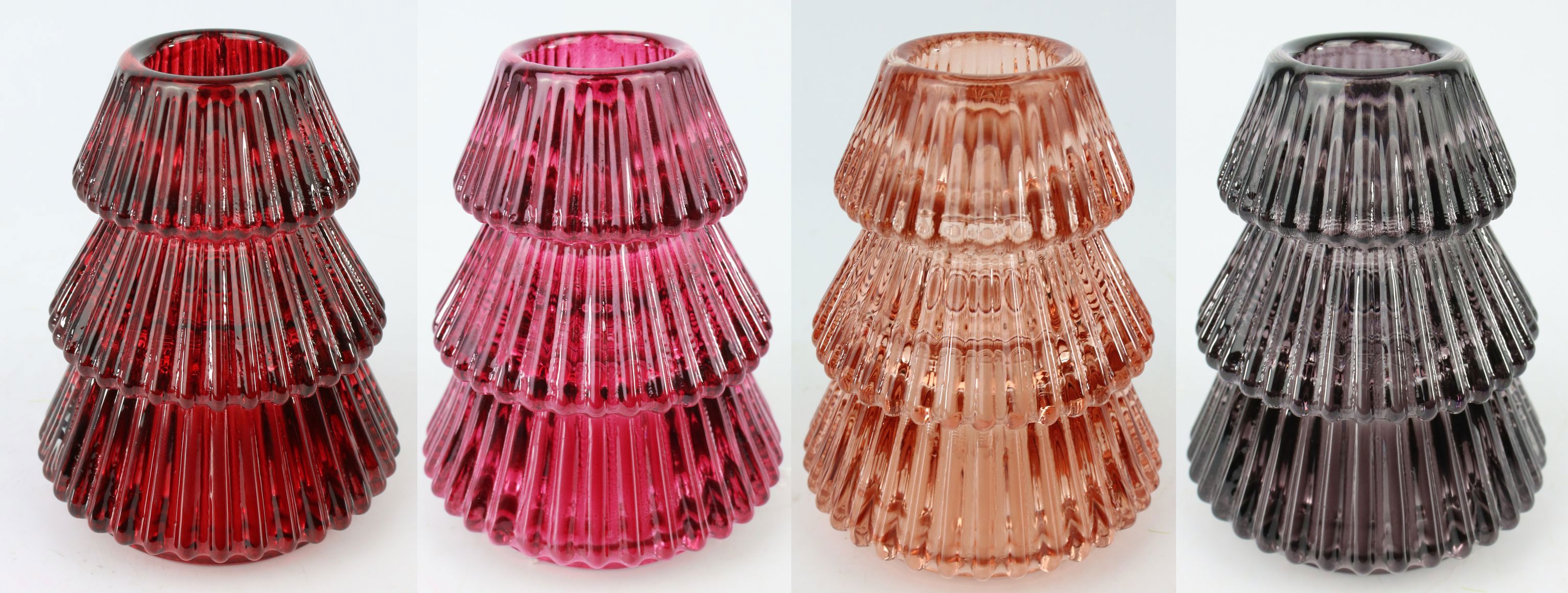 - Set of 4 glass candlesticks in the shape of fir trees