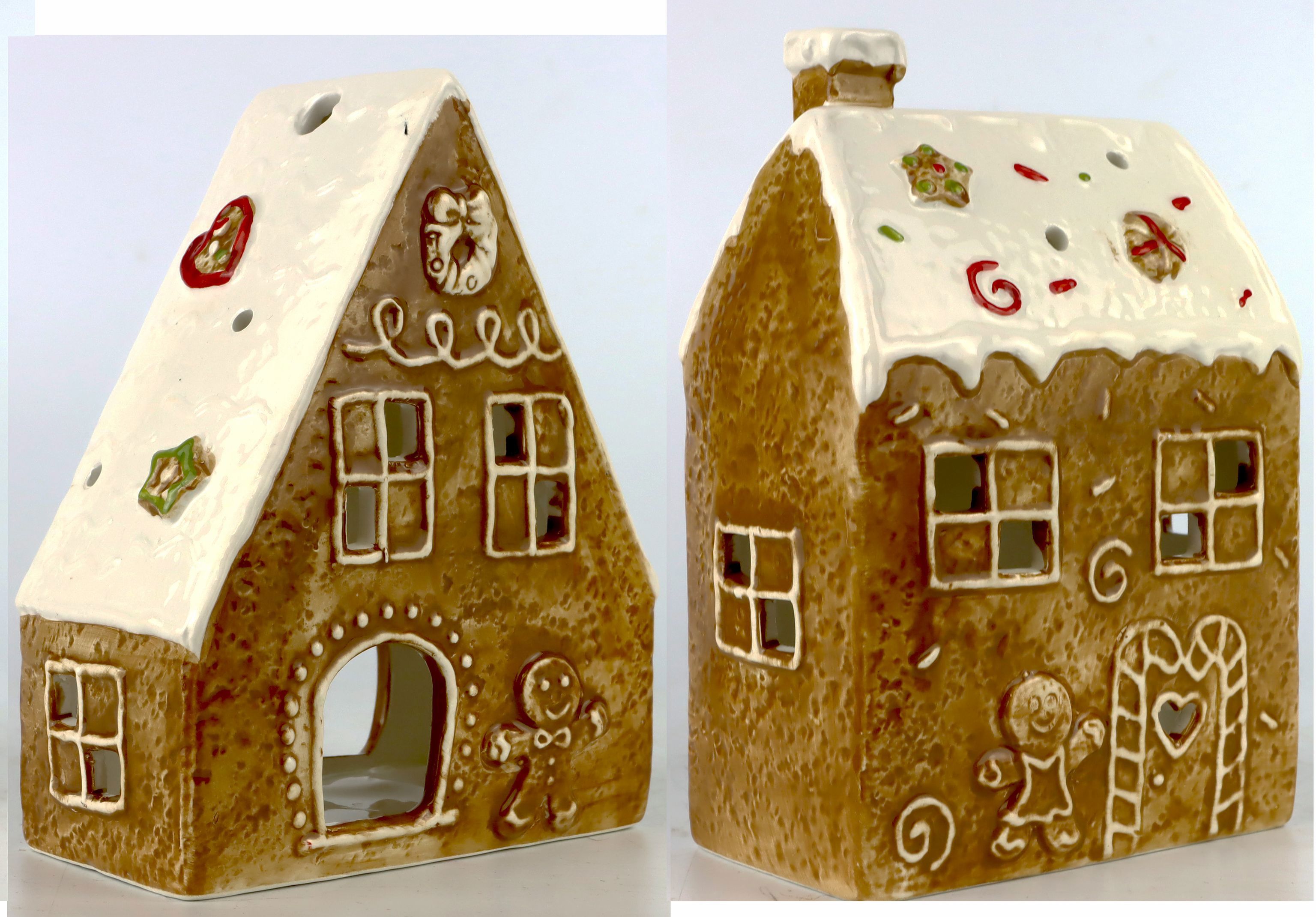 ENExperience the enchanting magic of the Christmas season with our "GINGER JOY" CANDLE HOUSES in a 2-piece set. These artfully designed candle houses lend any room a cosy and inviting atmosphere that is perfect for the festive season. Made in a charming gingerbread design, these decorative pieces are a real eye-catcher and provide the necessary touch of nostalgia and festivity in your home.