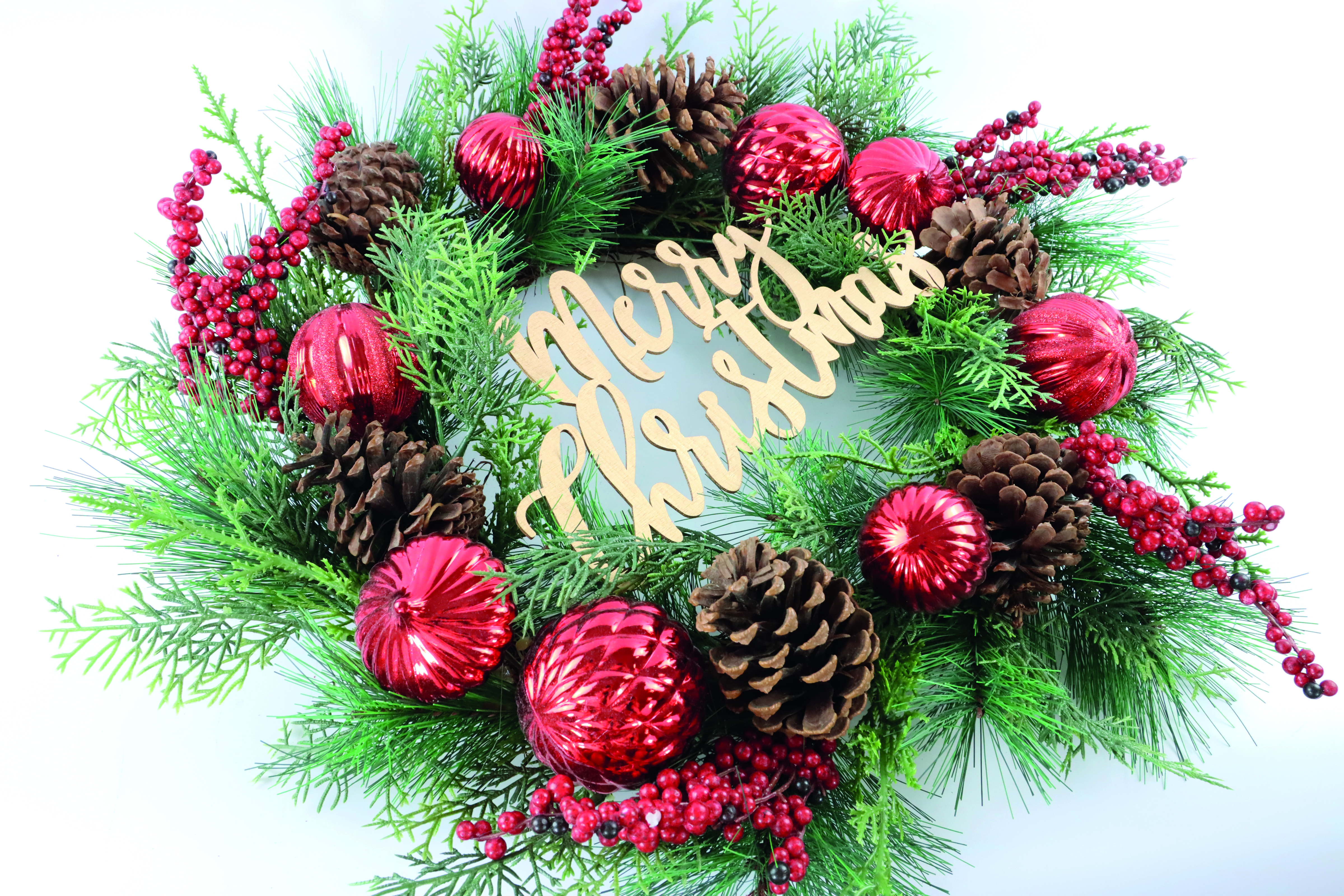 Discover the ideal blend of tradition and modernity with our decorative wreath and make your salesrooms particularly inviting during the festive season. With this product, you are guaranteed to stand out from the competition and offer your customers that little bit extra that will put them in the Christmas spirit.