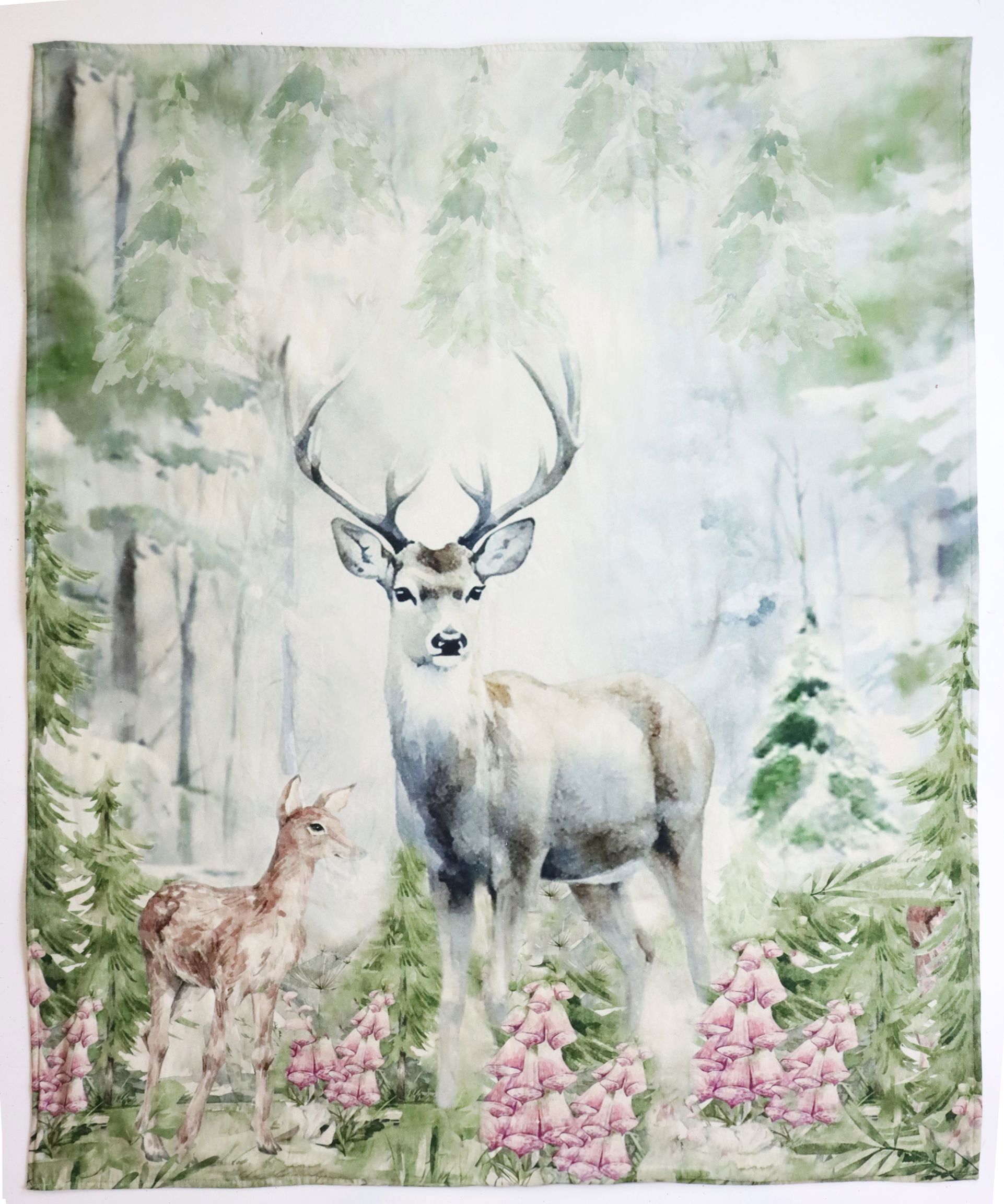 The "Wildwechsel" blanket measures 125 x 150 cm and is an indispensable home accessory, ideal for chilly autumn evenings or cold winters. It is made of high-quality cotton and velvet, which provide a soft and warm feeling. With its generous size, it offers enough space to snuggle up in while reading a book, watching TV or enjoying a warm cup of tea.