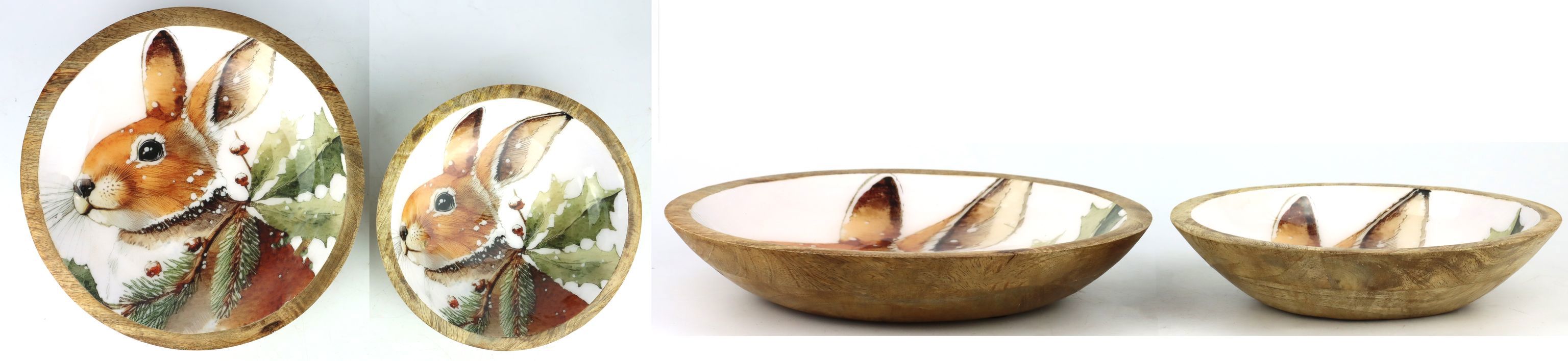 wood bowls snow rabbit s/2