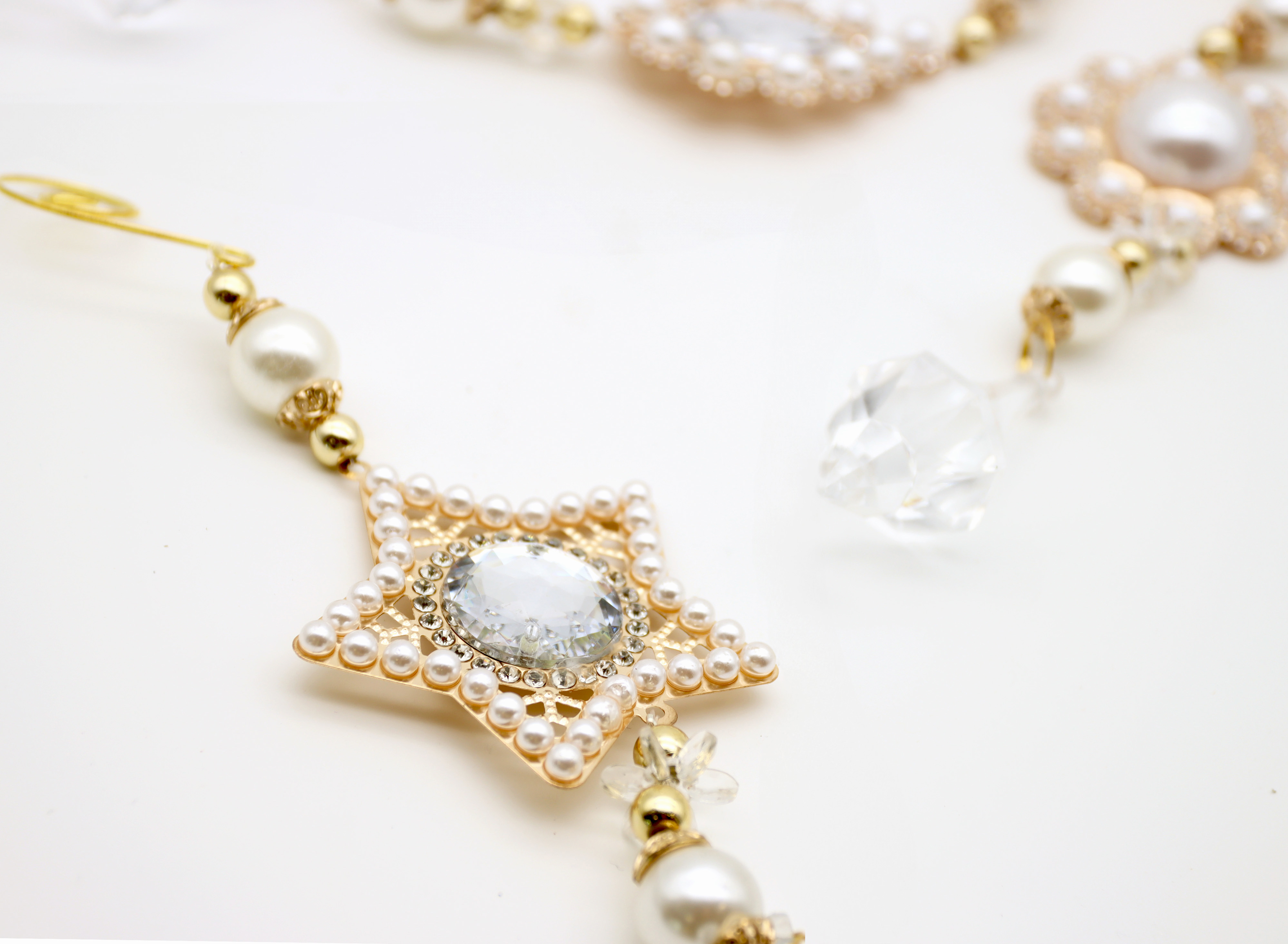 - Elegant pendant set with 6 pieces in pearl white, gold and blue