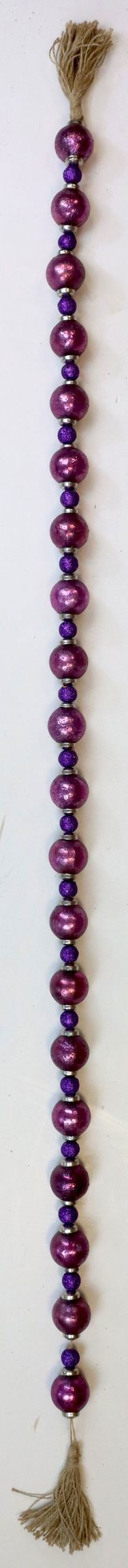 Keywords: ball garland, Christmas decoration, glass and jute garland, purple ball garland, decoration accessory, living area, season: Christmas, decoration assortment.