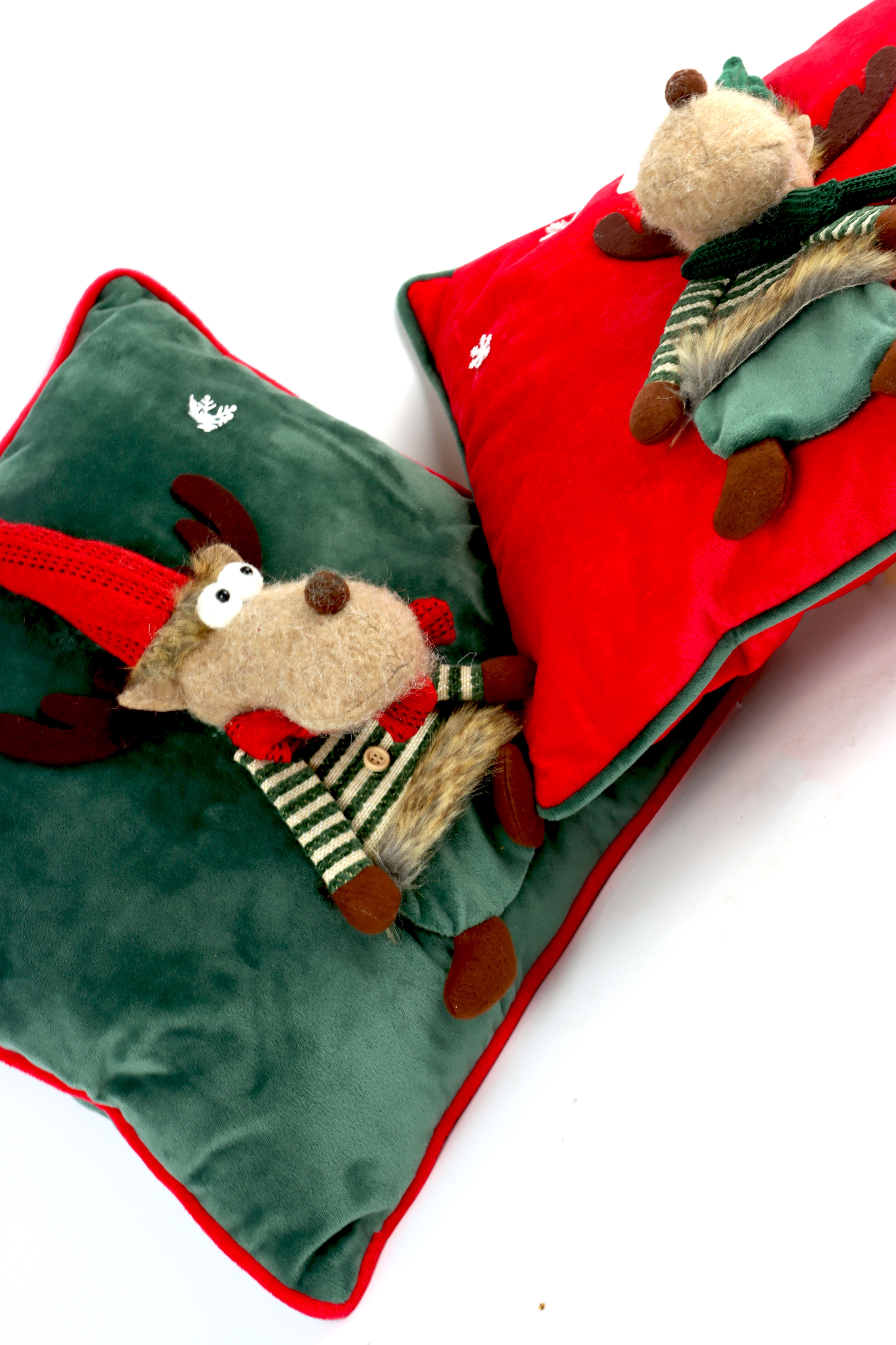 With our high-quality and stylish two-piece set of cushion covers, the jolly moose in Christmassy red and green will move into any living room. Bring rooms to life and create a warm, inviting atmosphere that will enchant customers and visitors alike. The "Jolly Moose" cushion covers are not just a decorative highlight, they bring fun and festivity to any room - a must-have for lovers of stylish and personalised Christmas homeware.