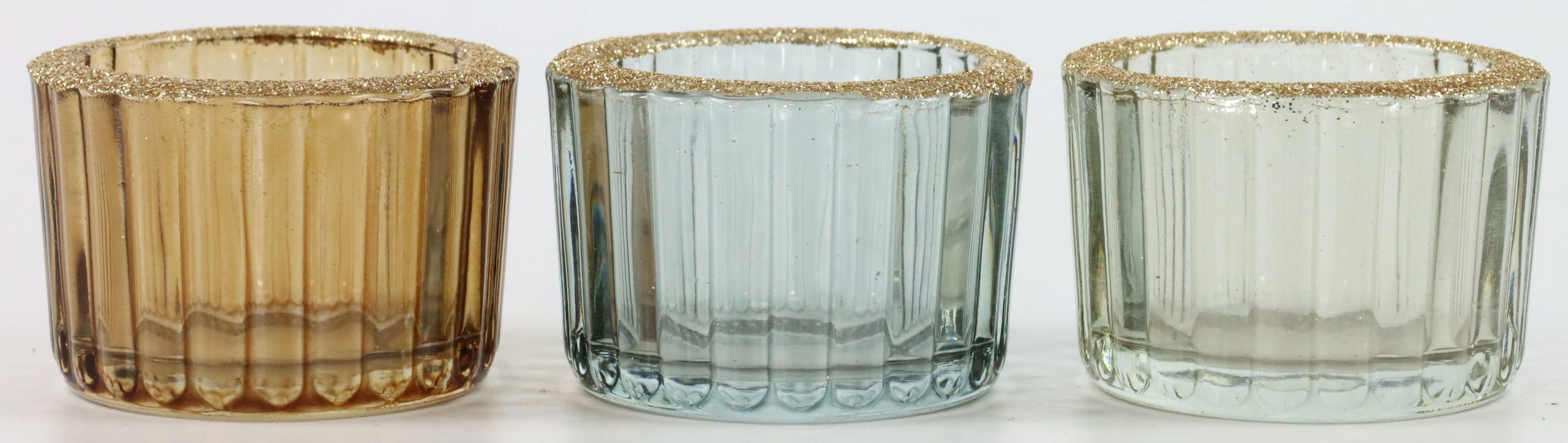 - Three-piece set of glass tealight holders