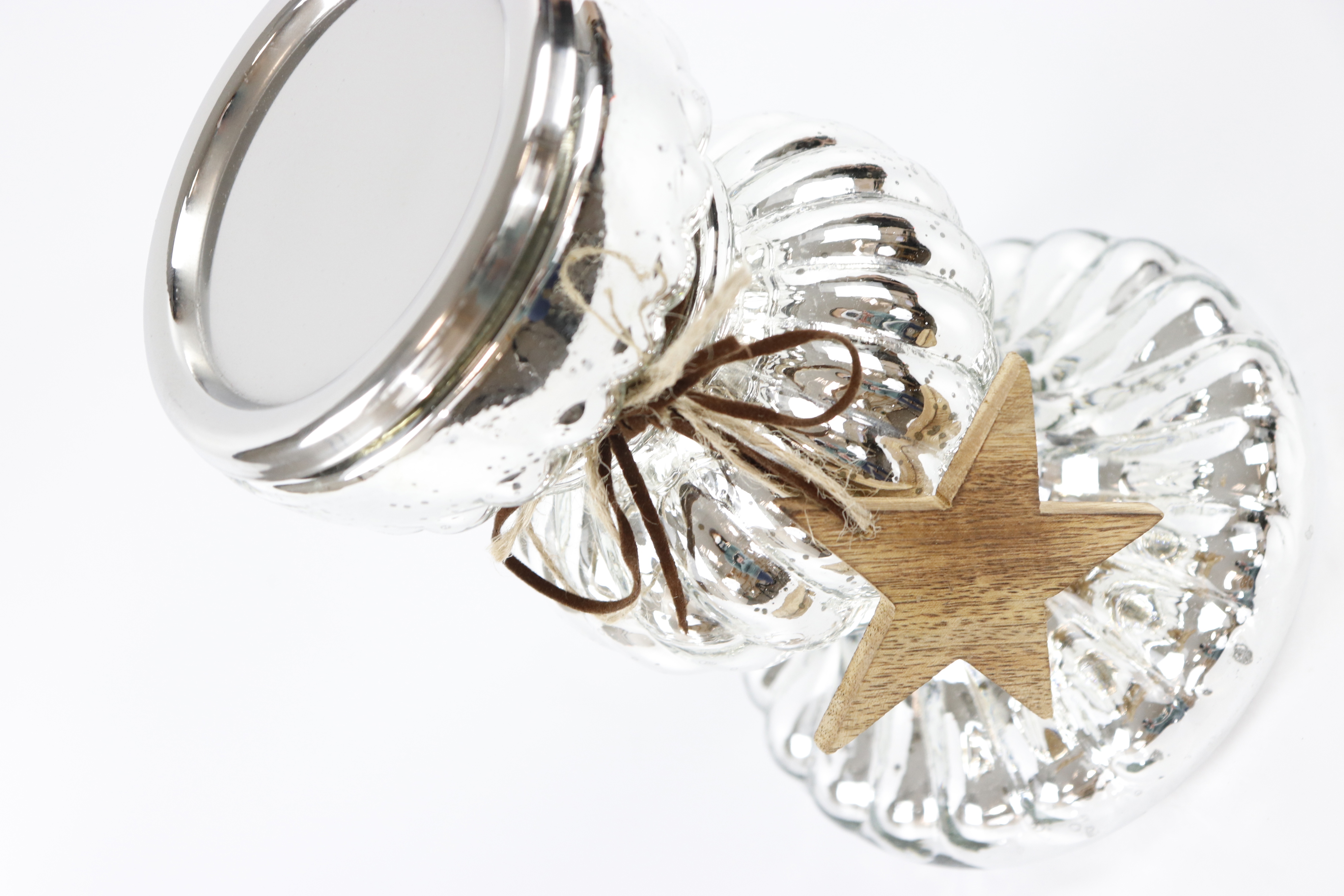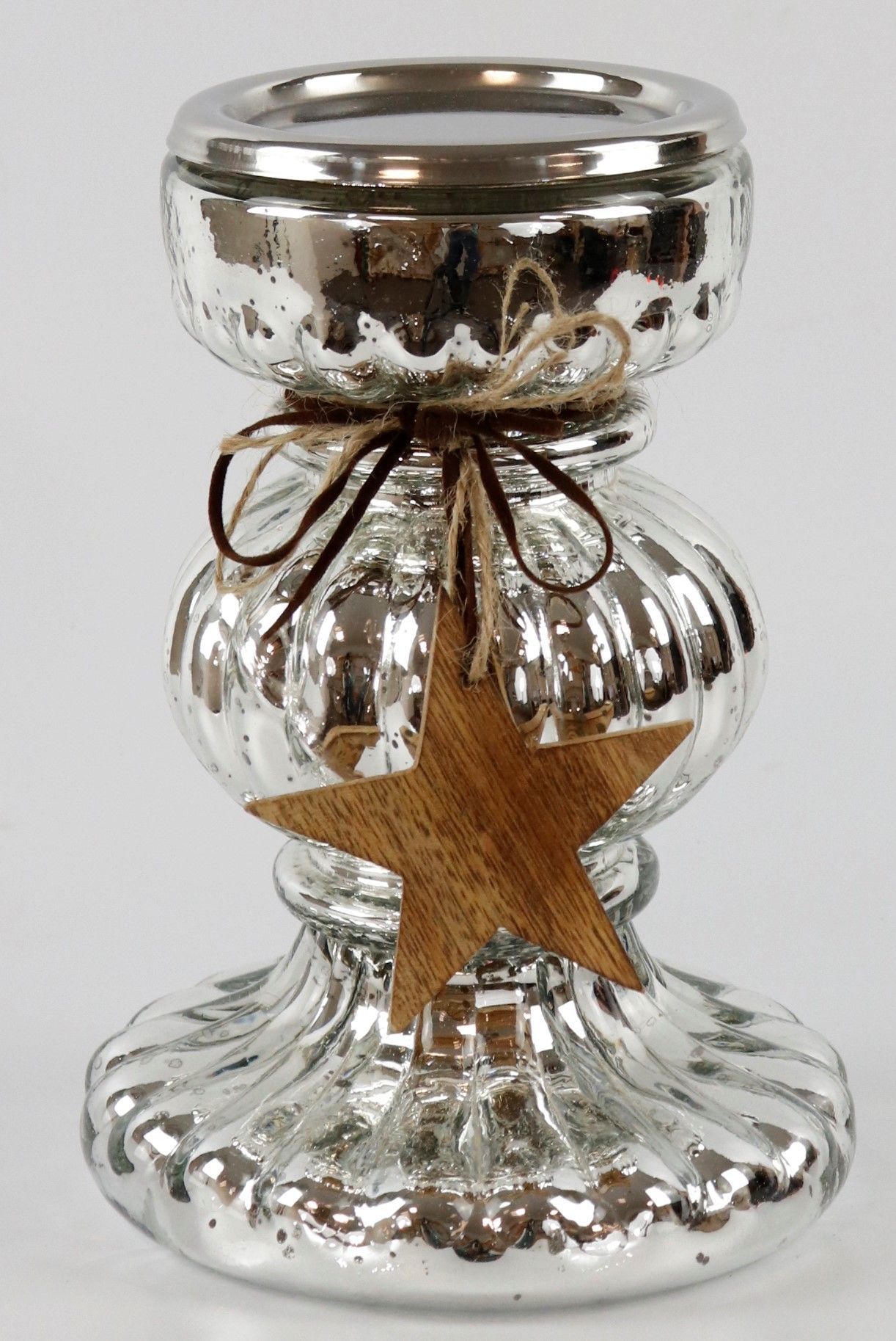 Candlestick star, Christmas decoration, table decoration, lifestyle home accessories, silver candlestick, glass and wood, item number 3853, retail products, B2B online shop, stationary retail.