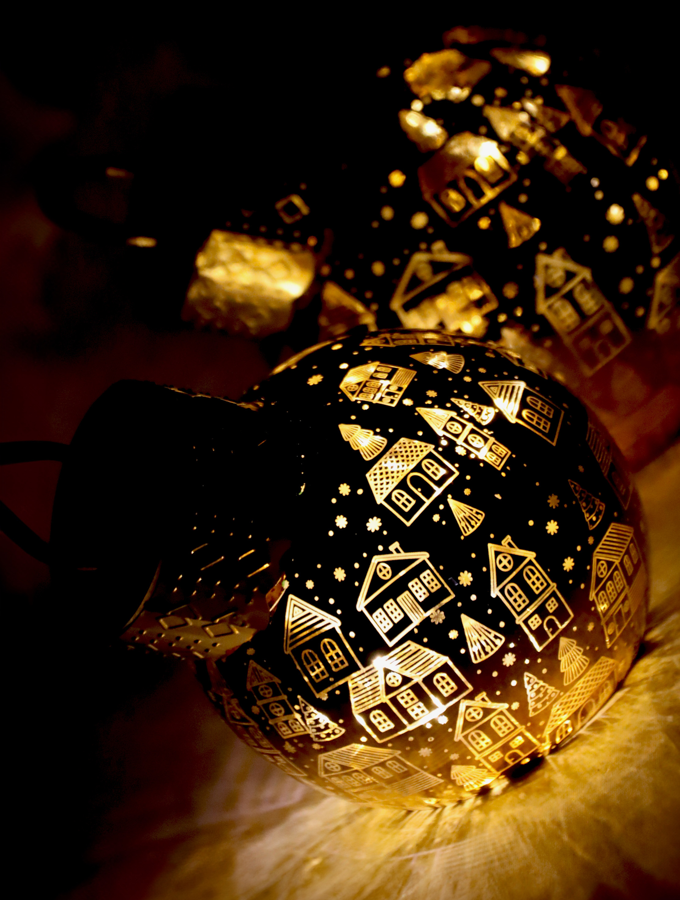 - Made of high-quality glass with elegant, golden houses as a motif
