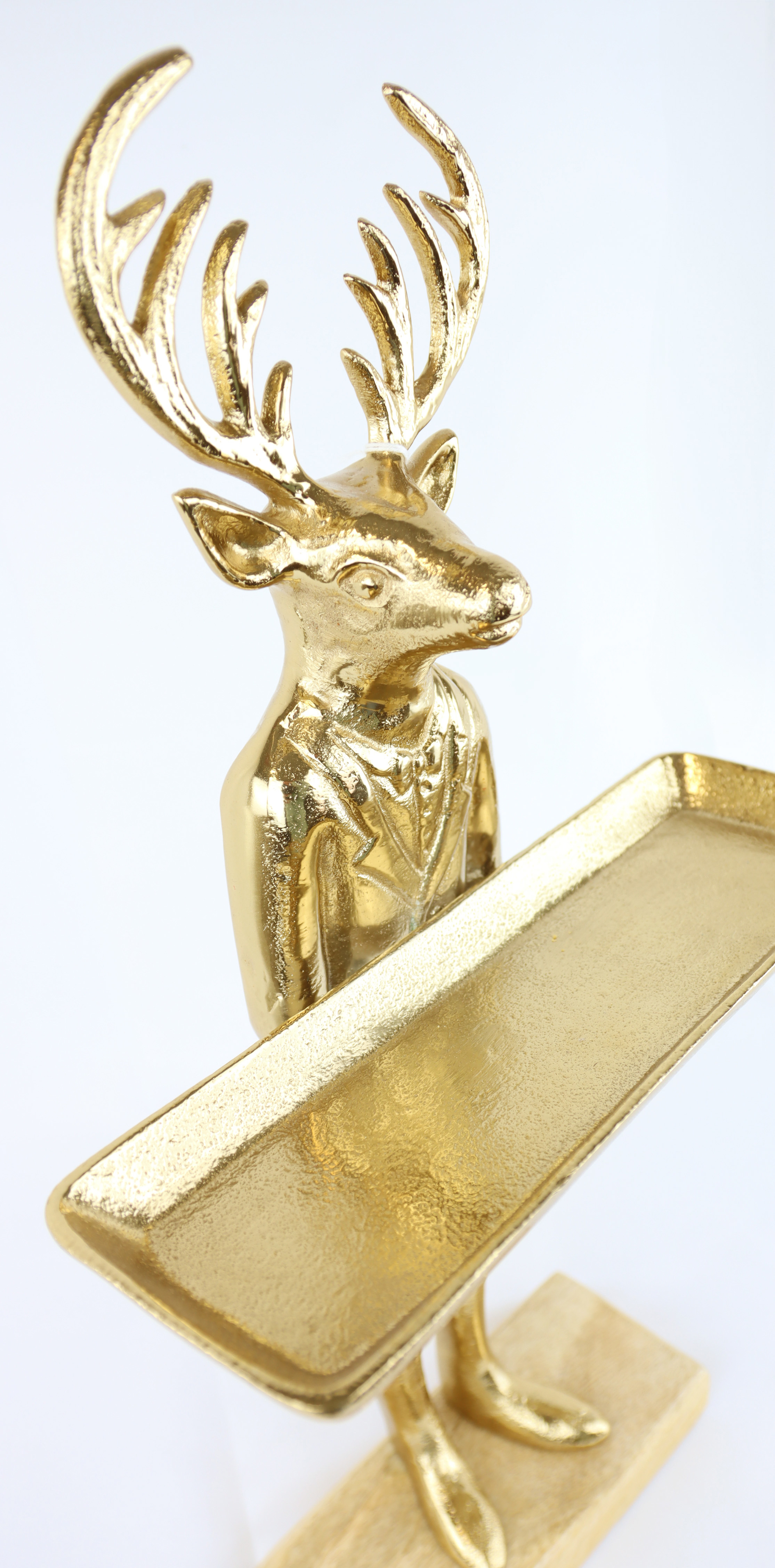 Transform your home into a stylish oasis of well-being with our exclusive stag butler in gold. This exquisite decorative element is more than just a functional helper - it is a real highlight in any living space. The golden deer butler is the perfect accessory that will delight your customers, especially for stationary retail in the home and lifestyle sector.