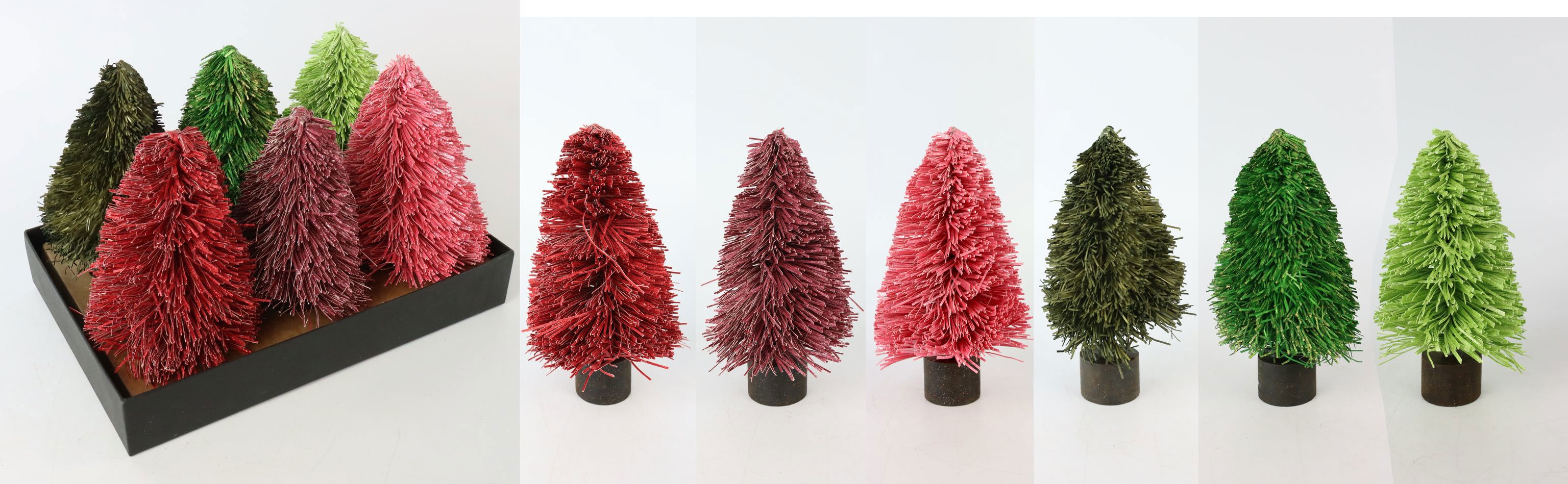 Discover our unique TREE DISPLAY "FRILL" S/6 that will add a festive touch to your home and lifestyle retail store. This carefully designed collection consists of six decorative trees in eye-catching shades of red and green, perfect for the festive season. The trees are made from high quality paper and wood and offer a durable solution for your festive decorating needs.