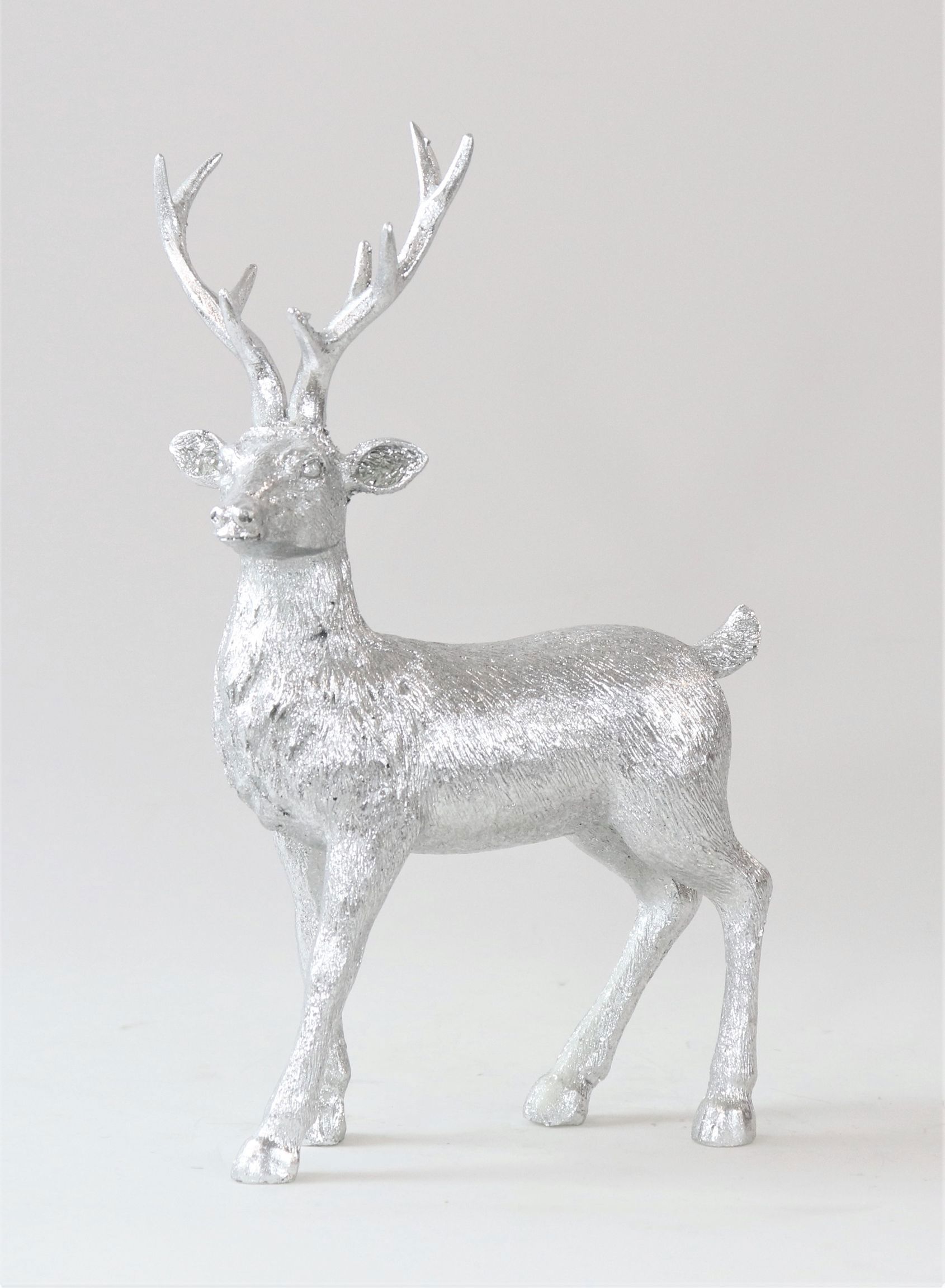 The exclusive polyresin material offers a detailed representation and stands for durability and quality. The silver lustre reflects the light perfectly and makes the stag shine particularly brightly in an atmospheric setting. Place the stag skilfully in your salesroom and it will certainly arouse the interest of your customers. This decorative figure is ideal for giving your shop a particularly festive atmosphere or for use as a highlight in themed displays.