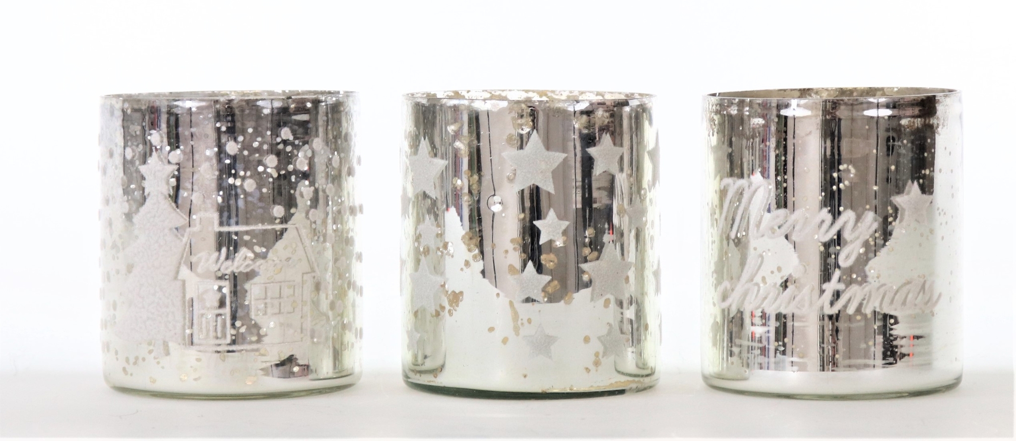 - 3-piece lantern set with "Merry Christmas" lettering