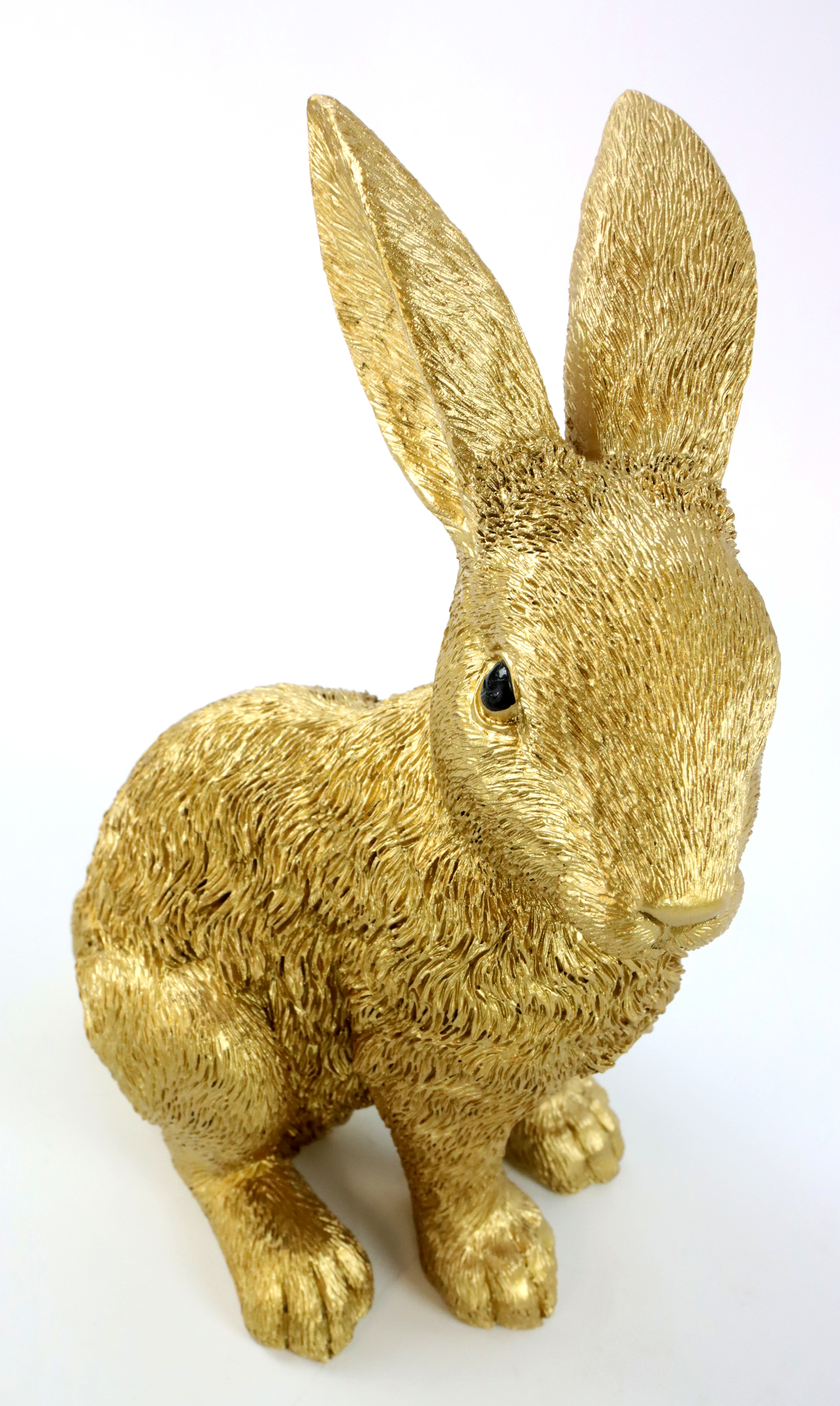 Give your shop an exclusive and elegant touch this coming Easter season with our magnificent "BUSY BUNNY" bunny. This luxurious bunny, made of high-quality polyresin, is finished in a radiant golden colour that will lend any room an atmosphere of elegance and festivity. With a height of approx. 22 cm, this Easter bunny is the perfect eye-catcher for shop window decorations, product presentations and as a stylish decorative element in your interior design.