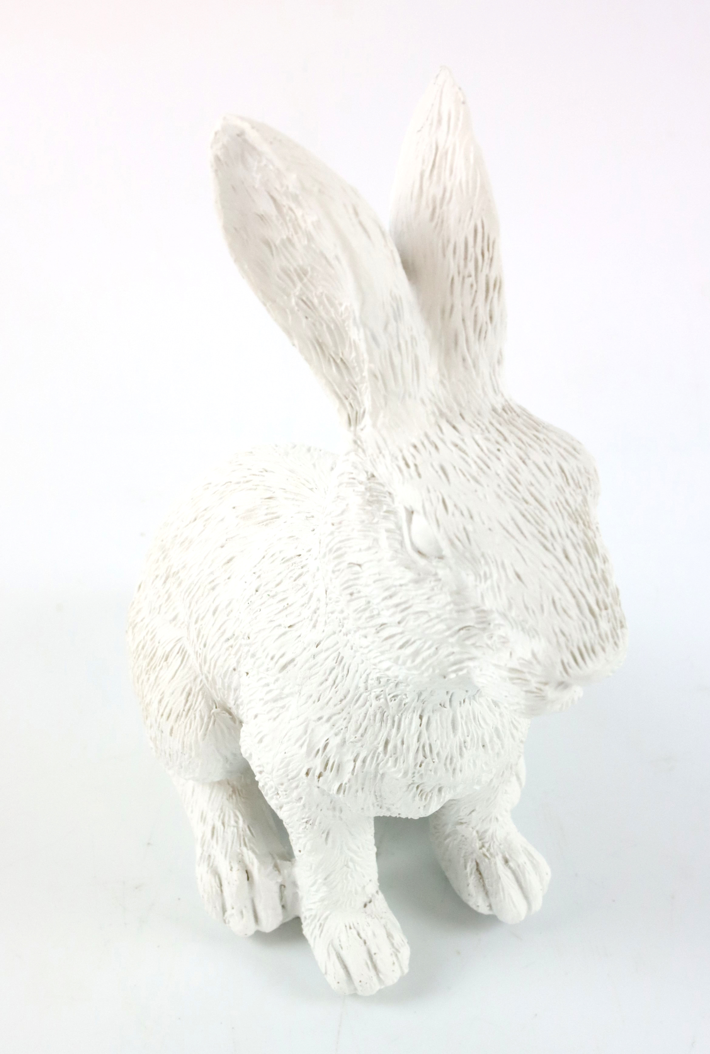 Made from hard-wearing polyresin, the BUSY BUNNY rabbit combines durability with a detailed design. The fine contours and matt white surface give it a stylish and modern design that can be harmoniously integrated into any interior concept. Whether on a shelf in your boutique or as a central eye-catcher in your café, this bunny attracts everyone's attention and creates an inviting atmosphere.