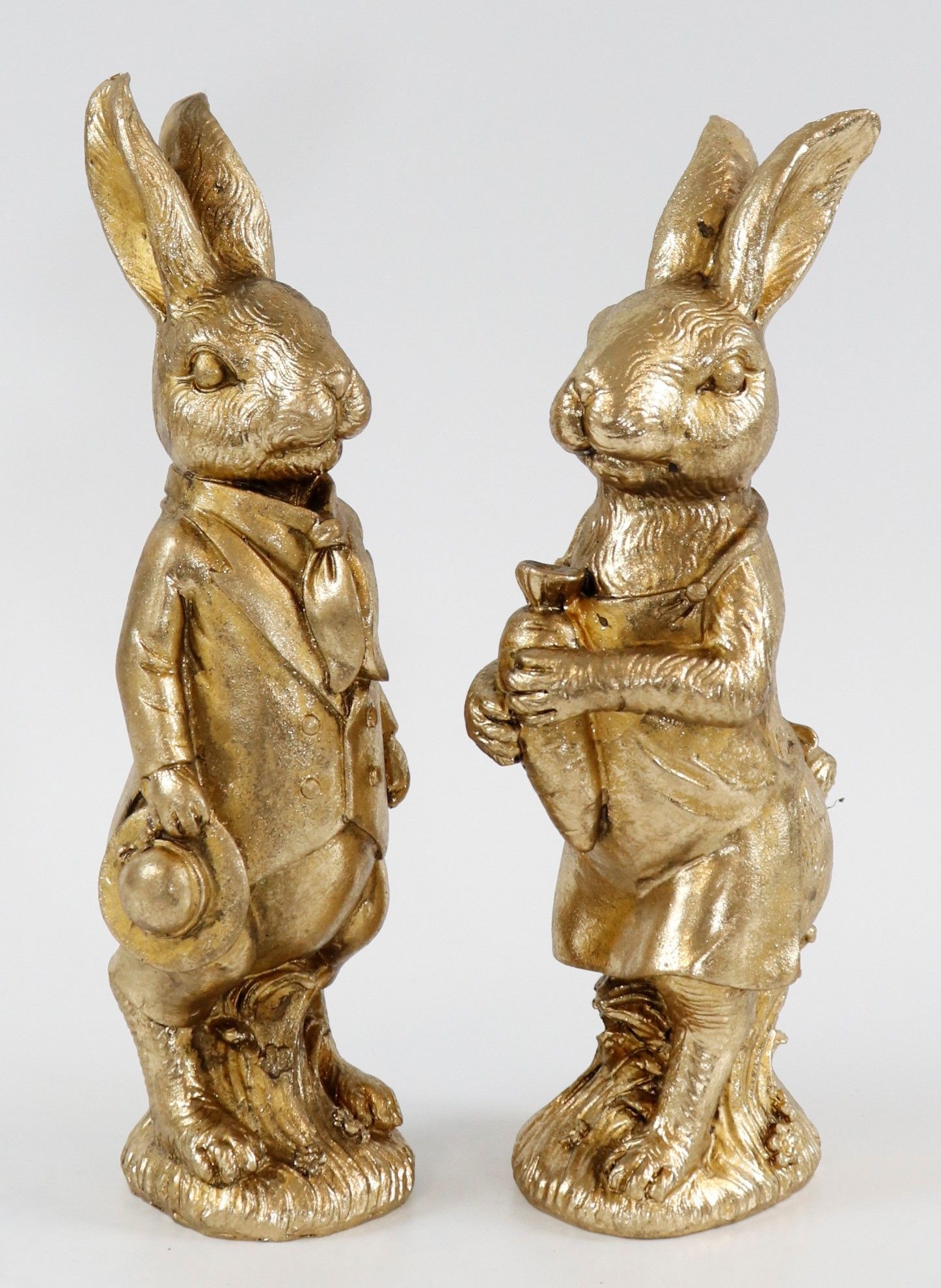 Add a touch of nostalgia and elegance to your shop at Easter time with the exclusive GOLD BUNNY "NOSTALGIA" S/2 set. This wonderful 2-piece set made of high-quality polyresin is not only a visual highlight, but also a tribute to traditional Easter decorations. With a height of approx. 22 cm each, the bunnies provide a practical and decorative accent for any living or retail space.