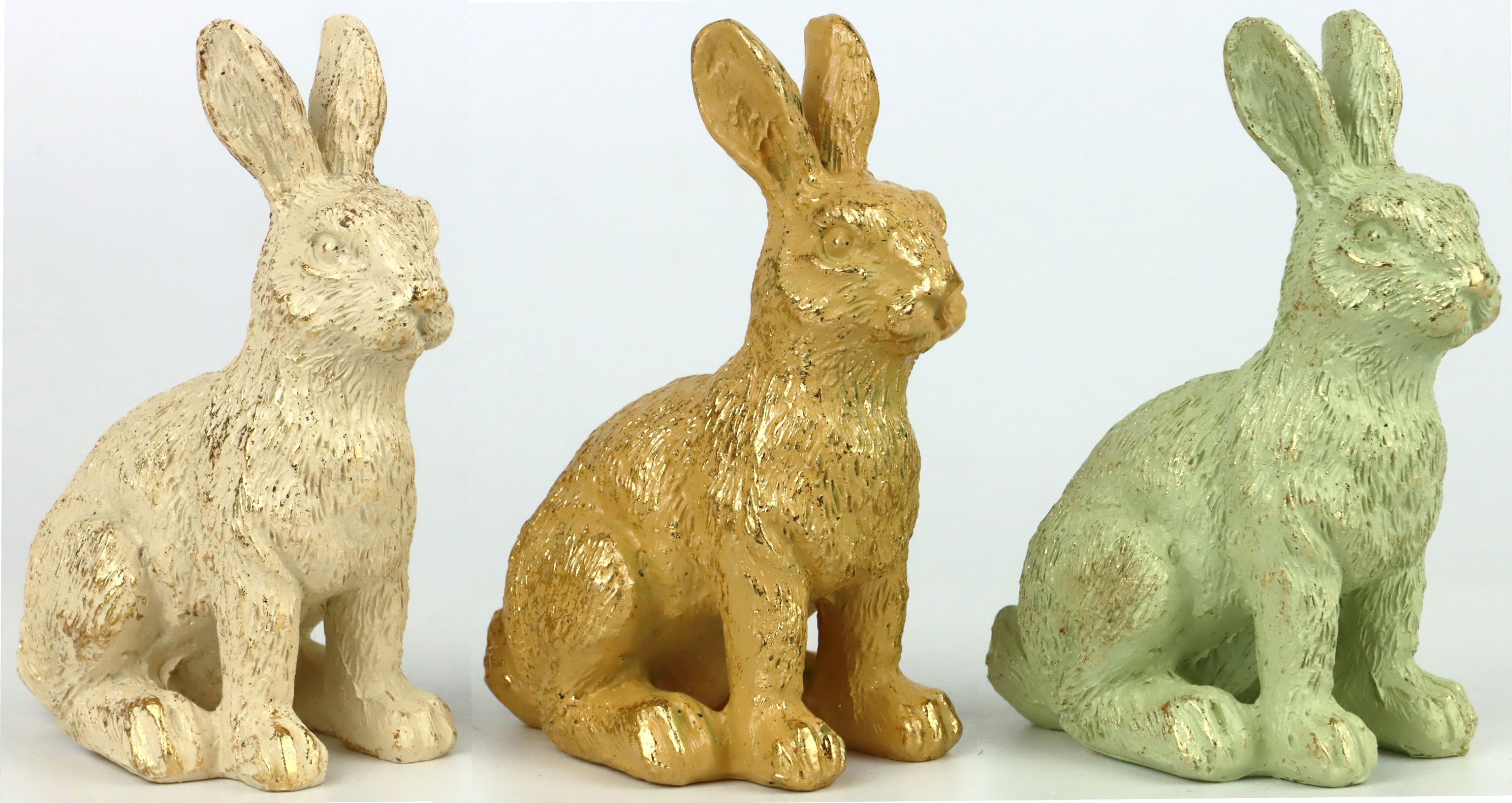 Enrich your range with our delightful "ELEGANCE" rabbit trio - a must-have for any stylish spring decoration. This charming three-piece set, consisting of elegantly designed rabbit figurines, is made of durable polyresin and is perfect for spring and Easter decorations. Measuring approx. 11 cm in height, these bunnies are the ideal decorative element to add a fresh, seasonal touch to any living space.