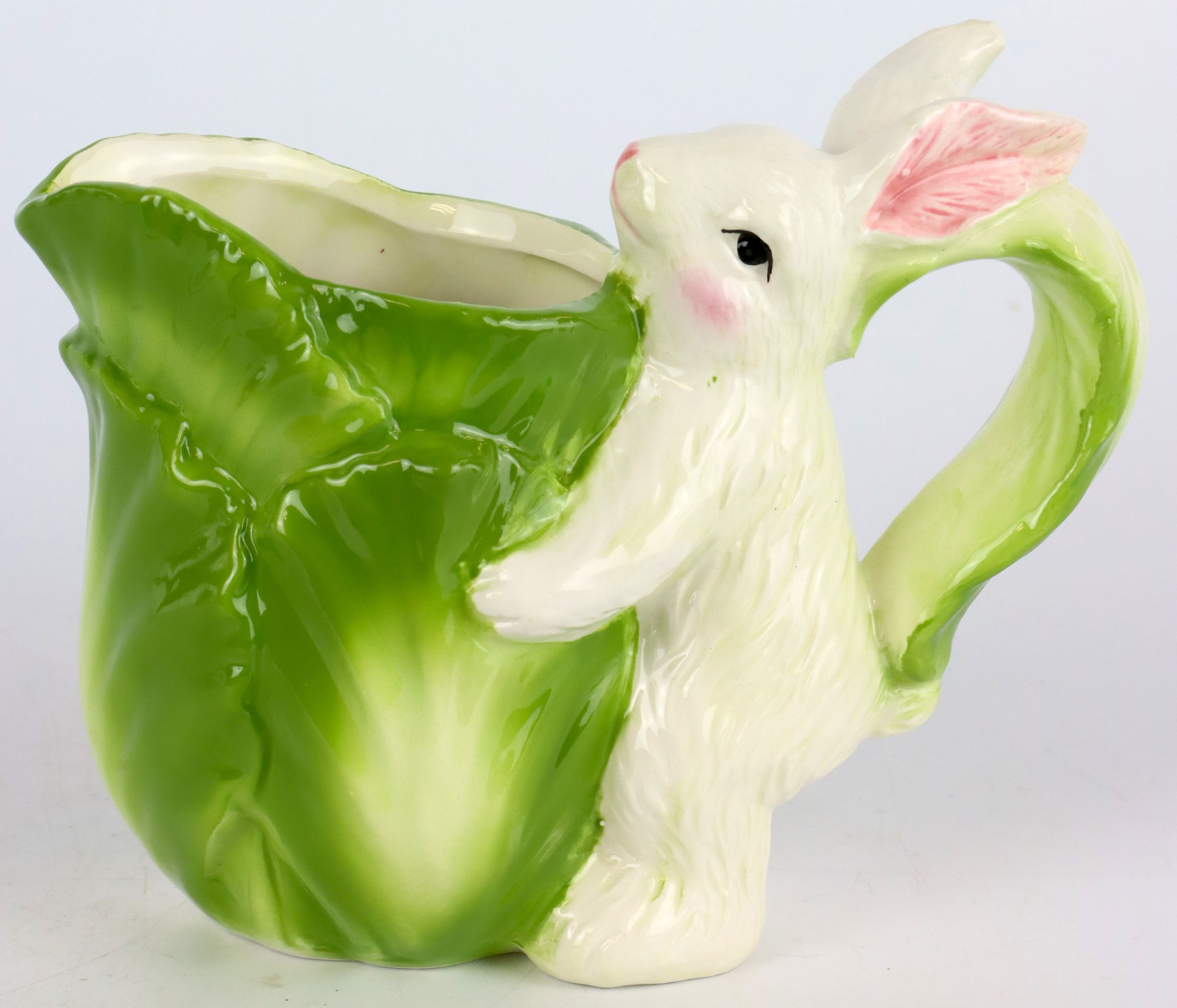 Discover the charming ceramic jug "BUONA PASQUA", an indispensable piece of jewellery for lovely Easter days and a highlight for every lifestyle and living area. This enchanting jug brings spring freshness and a sense of style to your business premises and encourages purchases. With a height of approx. 17 cm and an intricately designed motif of a cute bunny with cabbage, it is the perfect eye-catcher for Easter and beyond.