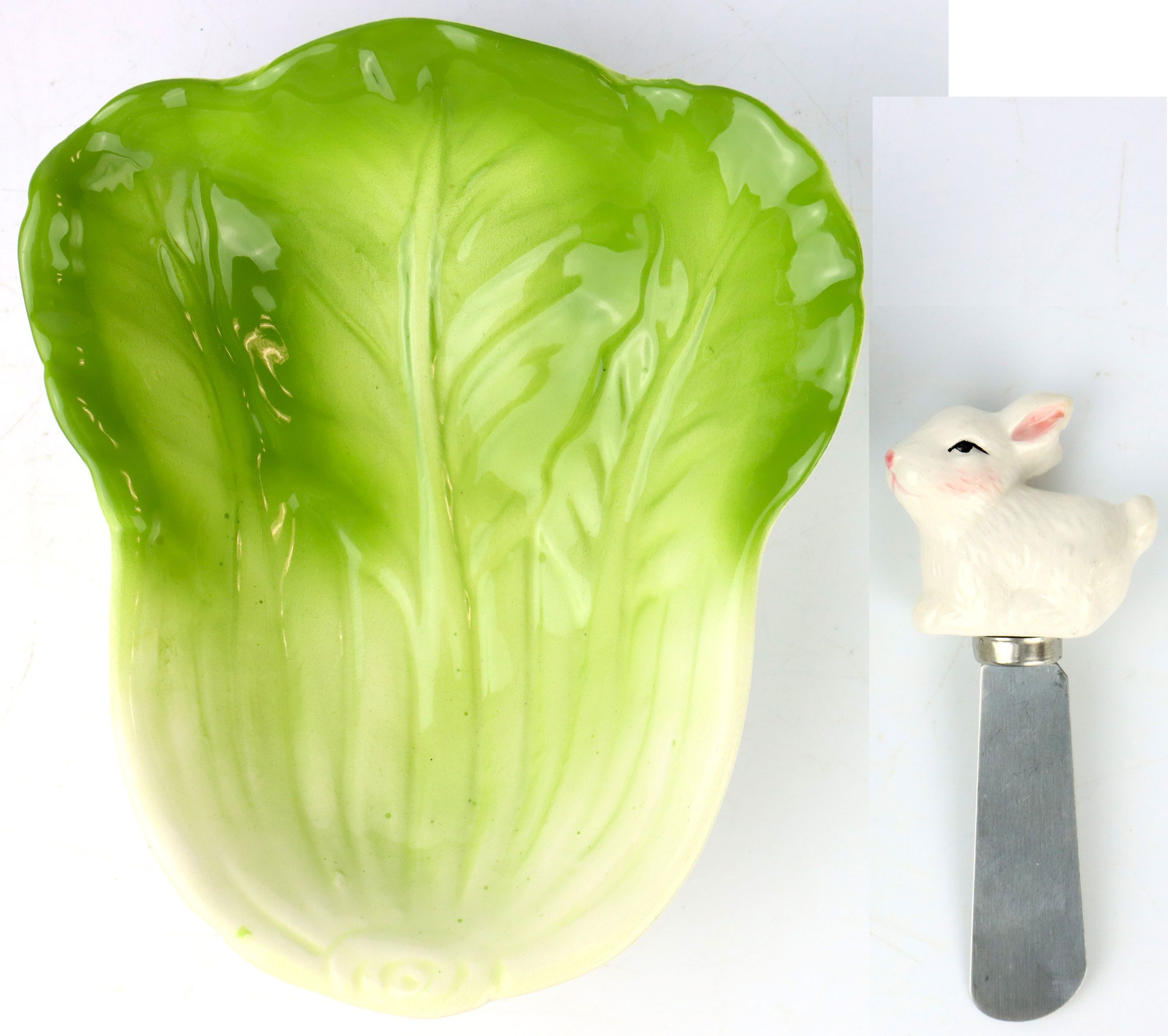 ### Product description: Easter set "Buona Pasqua" - ceramic leaf bowl with knife