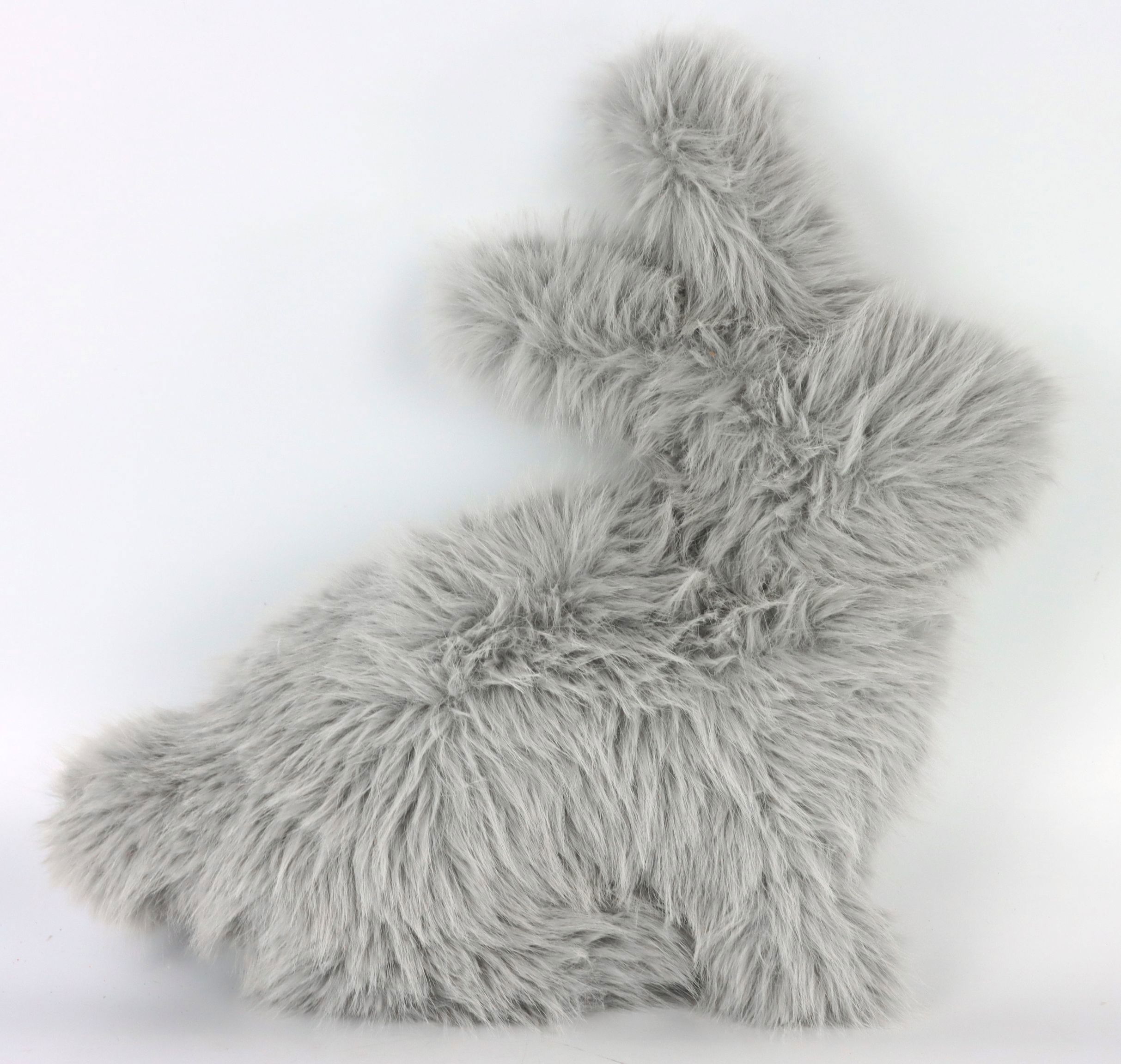 The "FURRY" rabbit cushion impresses with an elegant design in grey fur, made entirely from high-quality fake fur and polyester. With a generous size of around 45 cm, it offers both comfort and decorative value. The soft material makes it a perfect companion for cosy hours on the couch, while its enchanting look instantly enhances any room.