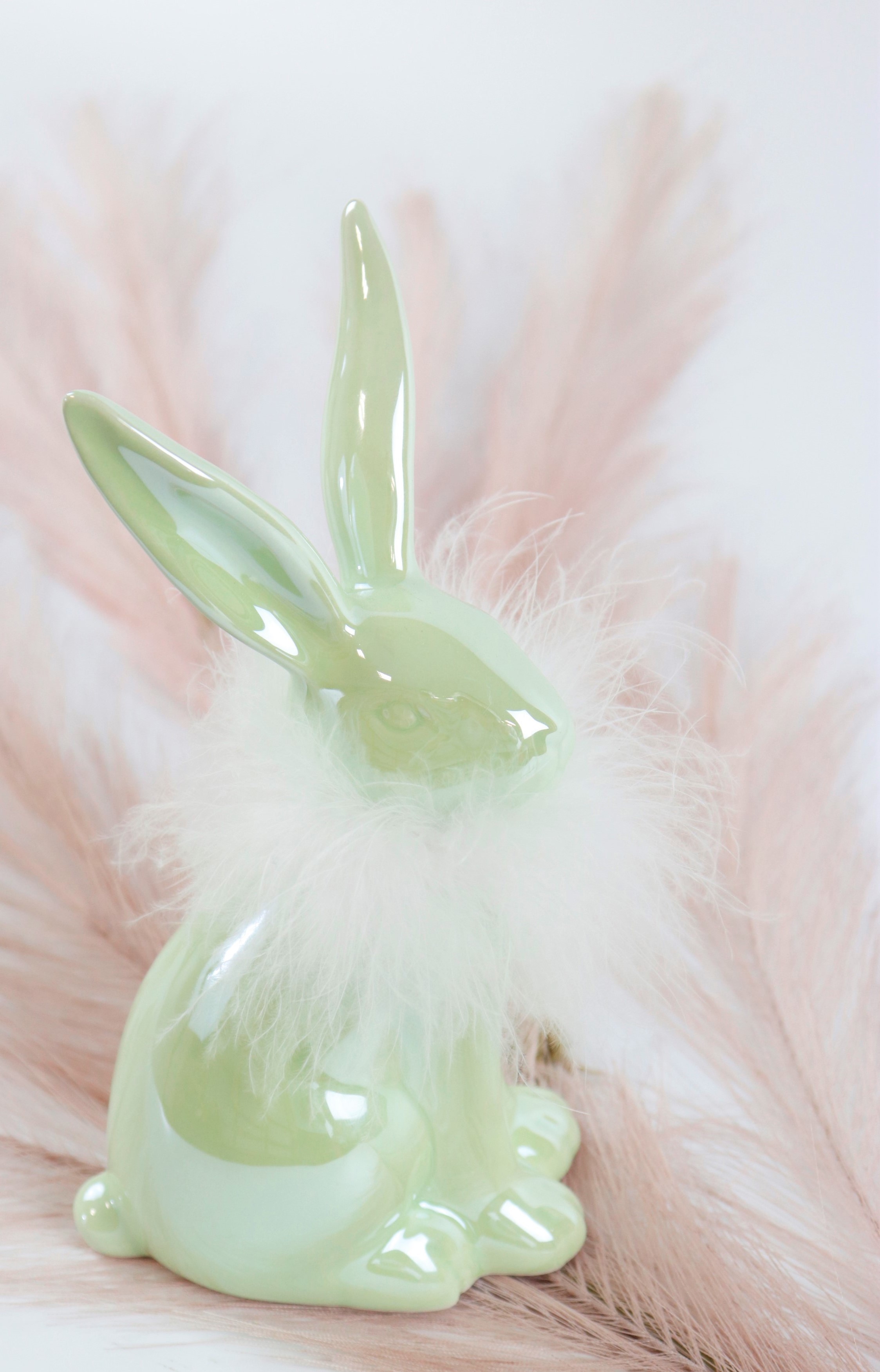Discover our exclusive "SHINE" bunny set, consisting of three beautifully shaped ceramic figurines that will take your Easter decorations to a whole new level. These skilfully crafted bunnies are the perfect eye-catcher for all lovers of high-quality home design. Each set contains three individually designed ceramic bunnies with a stately height of approx. 19 cm. These decorative elements are ideal for stationary retail in the home and lifestyle sector and can be seamlessly integrated into any shop environment.