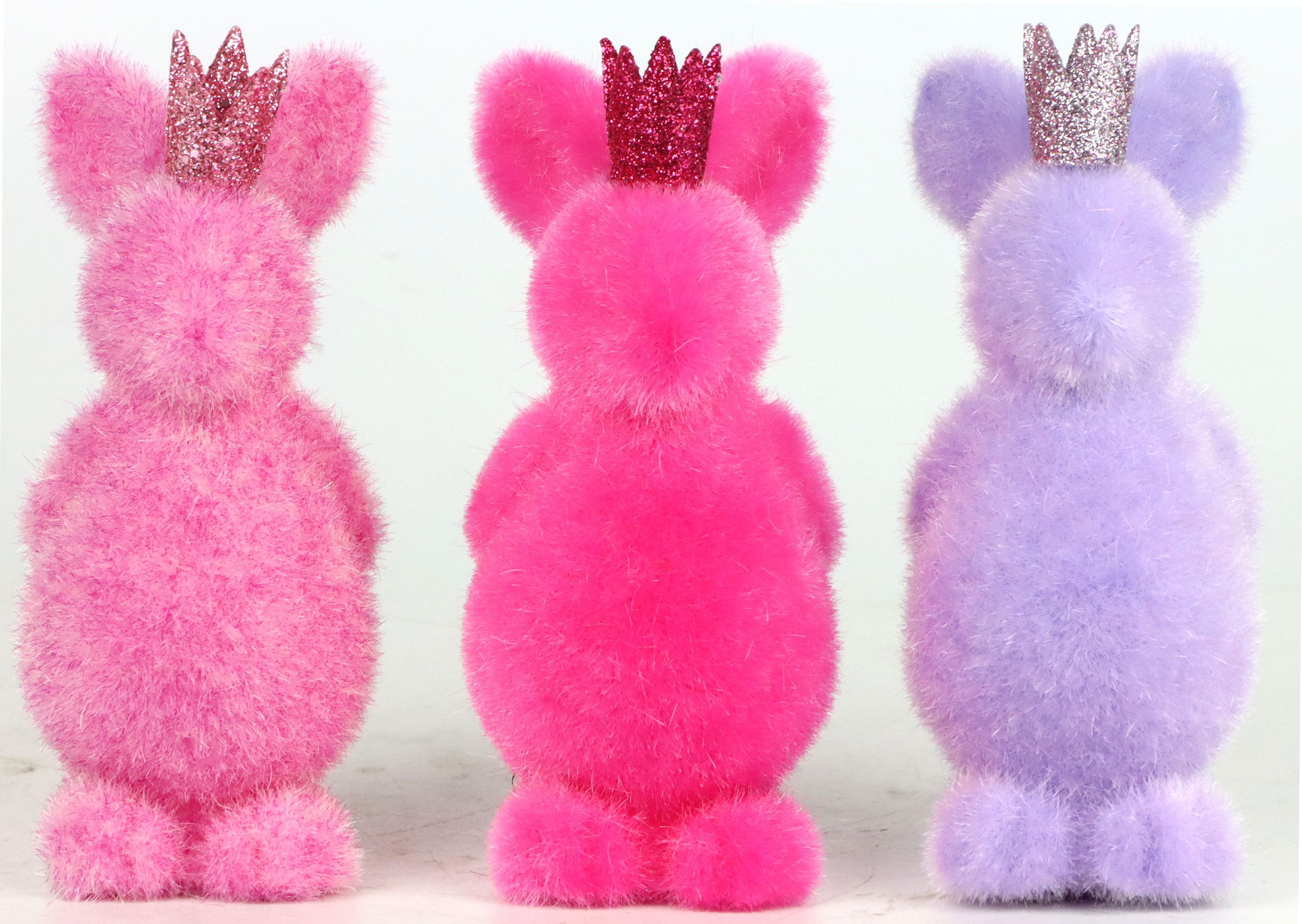 EN### Product description: Bunny set "FLOCAGE" S/3 - Easter decoration in pink and purple