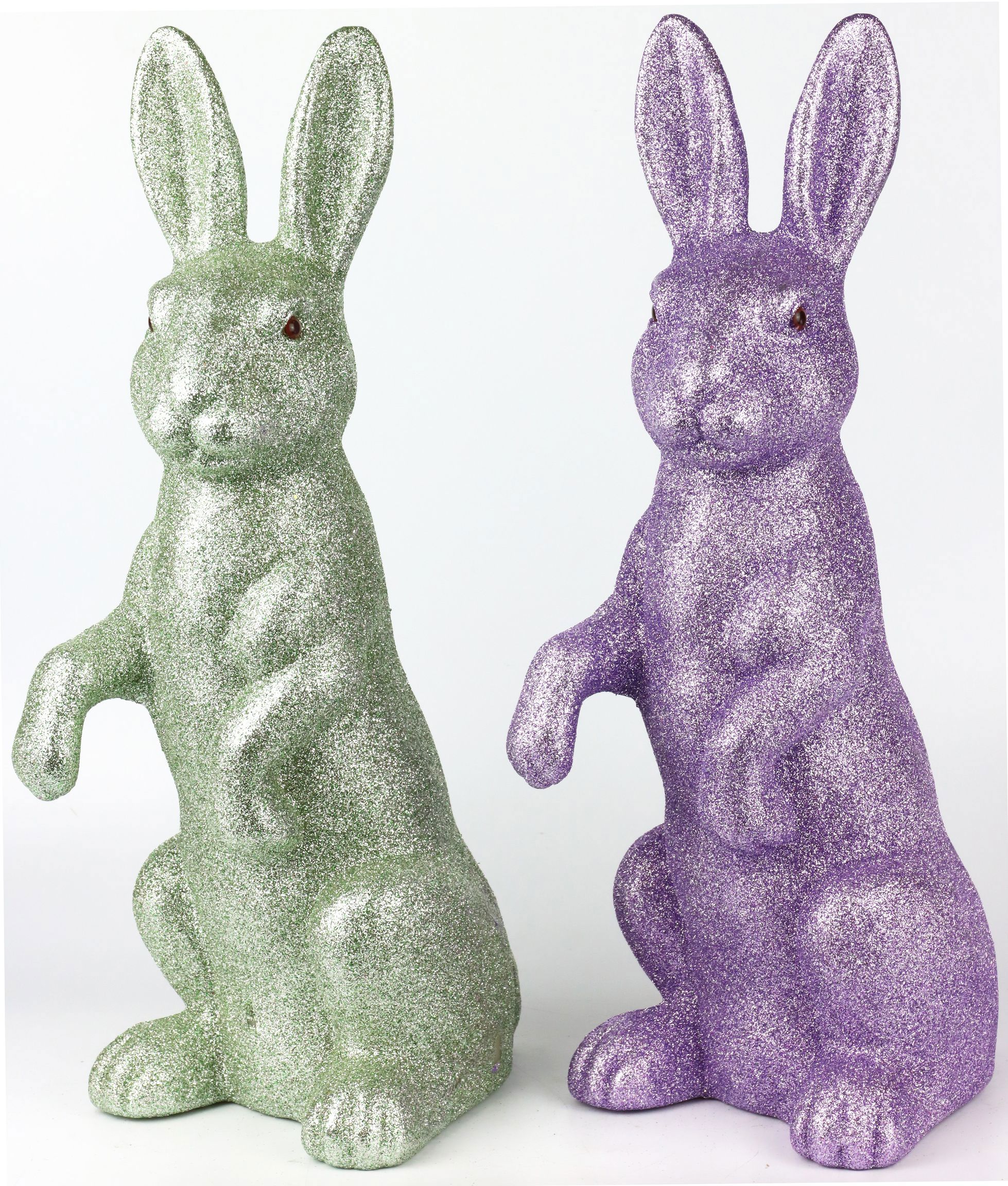 Discover the charming BUNNY "MAGNIFICENCE" set, a must-have for any sophisticated retail Easter decoration. This exquisite 2-piece set of glittering bunnies will add a touch of elegance and glamour to your collection. Made from high quality plastic, the bunnies are characterised by their remarkable size of approx. 44 cm, making them an impressive eye-catcher in any shop window or shop display.