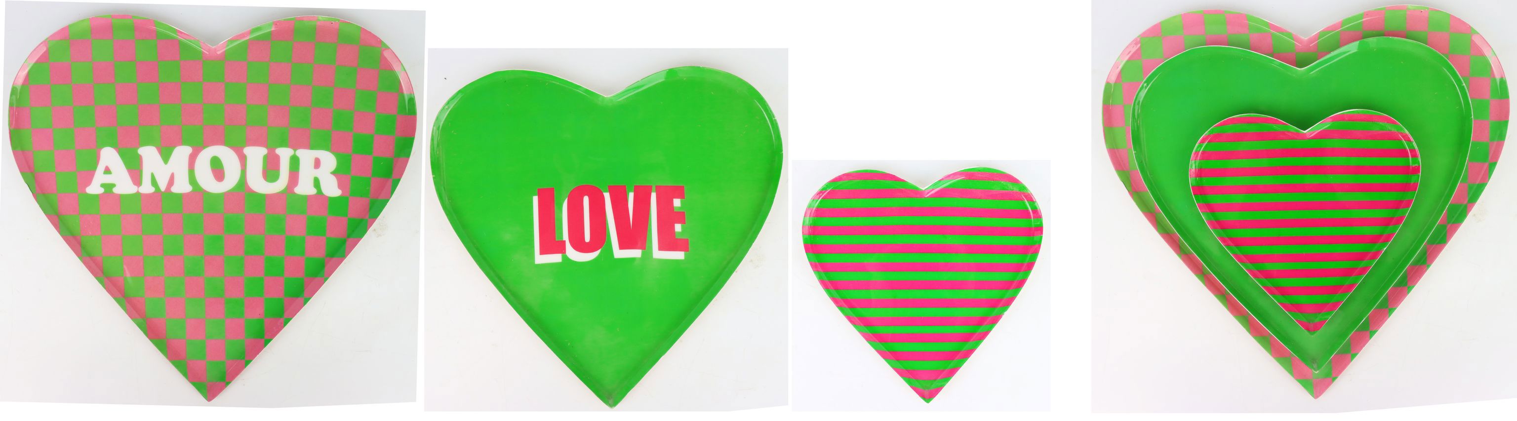 Discover our enchanting "Message" heart tray set in a practical 3-pack, which will fill your rooms with an extra dose of charm just in time for the spring/summer season. These decorative heart trays are the ideal addition for stationary retail in the home and lifestyle sector. Each metal tray is not only a useful accessory, but also a stylish decorative element.