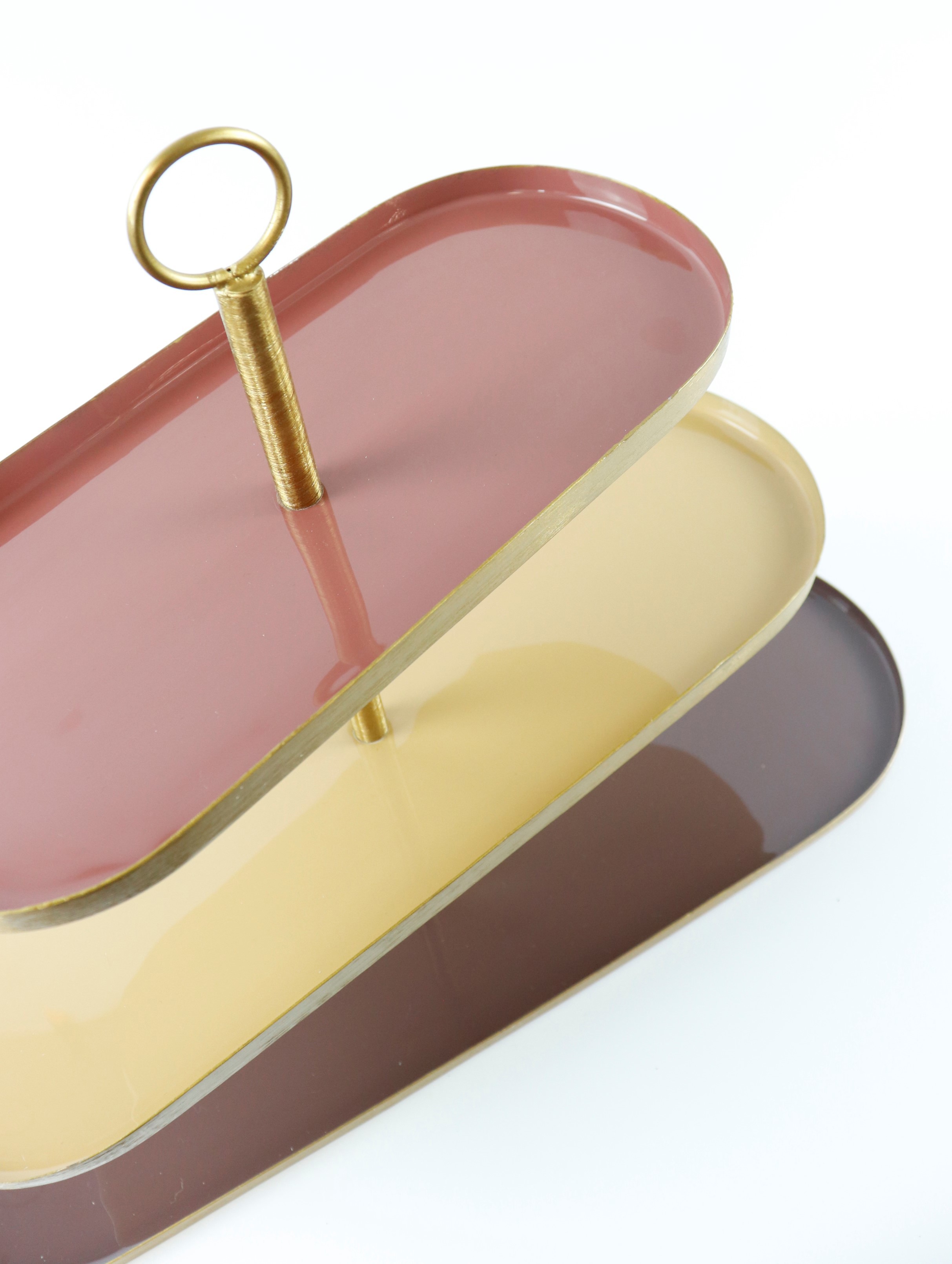 Descubra la encantadora elegancia de la "ETAGERE DELUXE", una joya ovalada de tres pisos que no puede faltar en ningún ambiente amueblado con estilo. Especialmente diseñada para la venta al por menor en el sector del hogar y el estilo de vida, esta etagere combina una estética atemporal con una funcionalidad práctica. Con una impresionante altura de unos 51 cm y un elegante acabado marrón de metal robusto, es la elección ideal para los minoristas que desean ofrecer a sus clientes no sólo funcionalidad, sino también un toque de lujo.