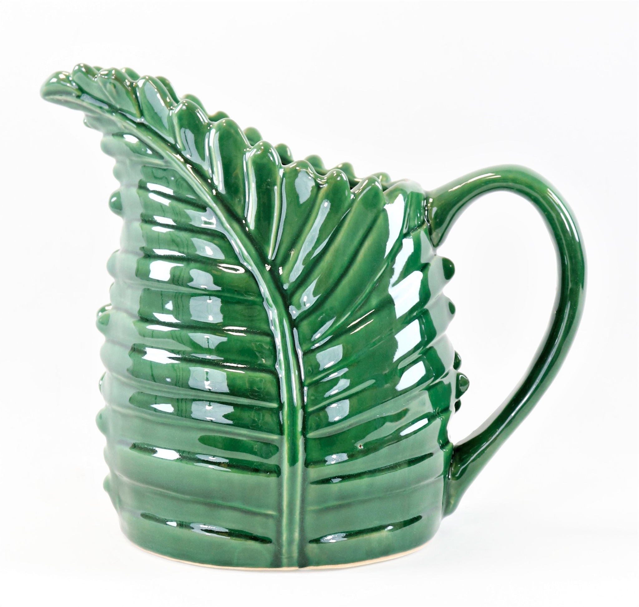 La jarra "FOLIAGE" tiene una capacidad de 1,9 litros y está fabricada en cerámica de alta calidad. Su diseño único en forma de hoja confiere a cualquier estancia una estética natural y moderna, perfecta para la temporada primavera/verano. Ya sea como centro de mesa o como elemento decorativo en su tienda, esta jarra atraerá todas las miradas.