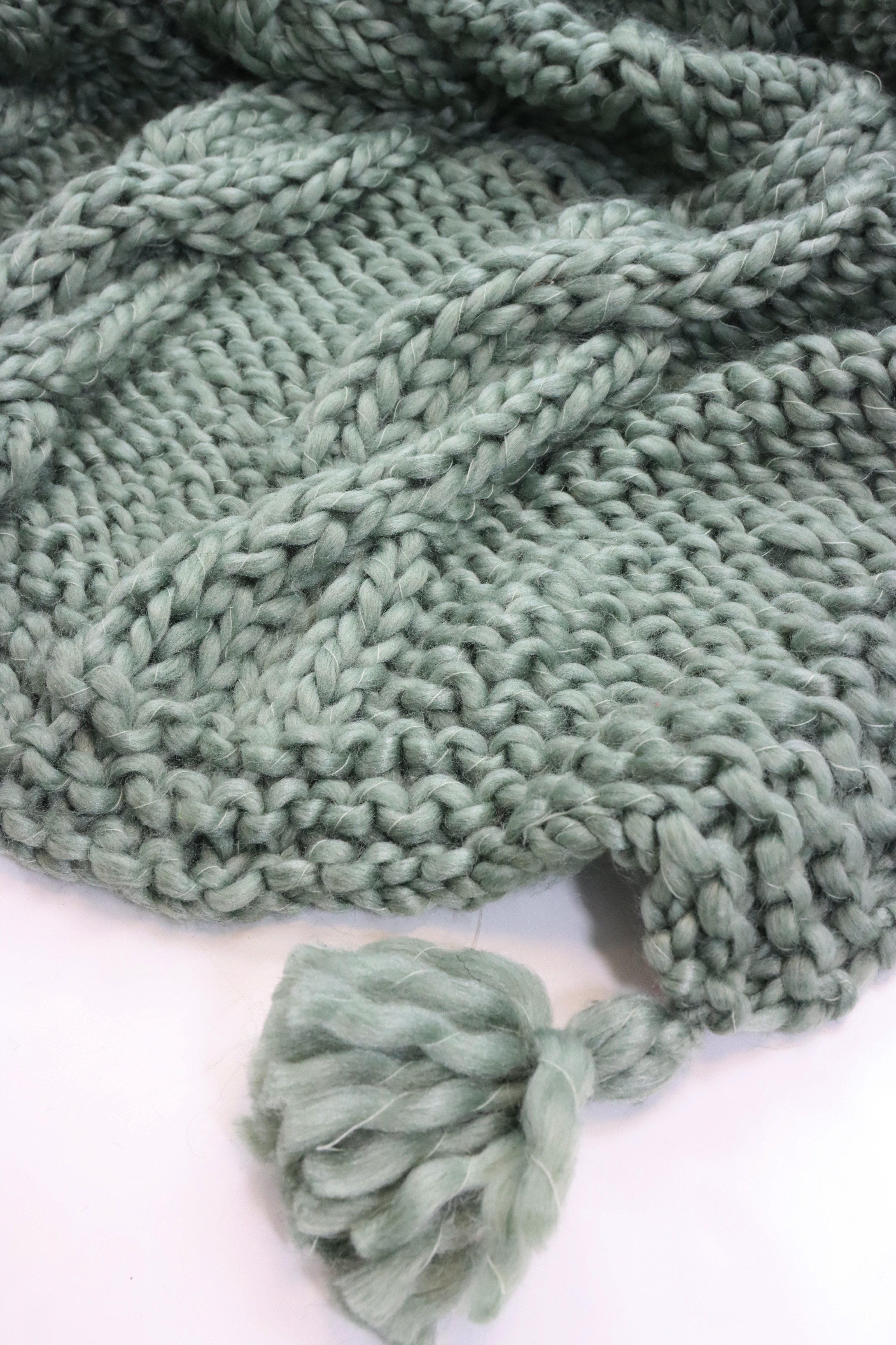 Palabras clave SEO relevantes: manta de punto, Gstaad, botellas PET recicladas, vida sostenible, textiles para el hogar sostenibles, acogedora manta de invierno, cálida manta de otoño, producto de estilo de vida, producto de tendencia para el comercio minorista, manta de punto grueso, manta en verde claro.