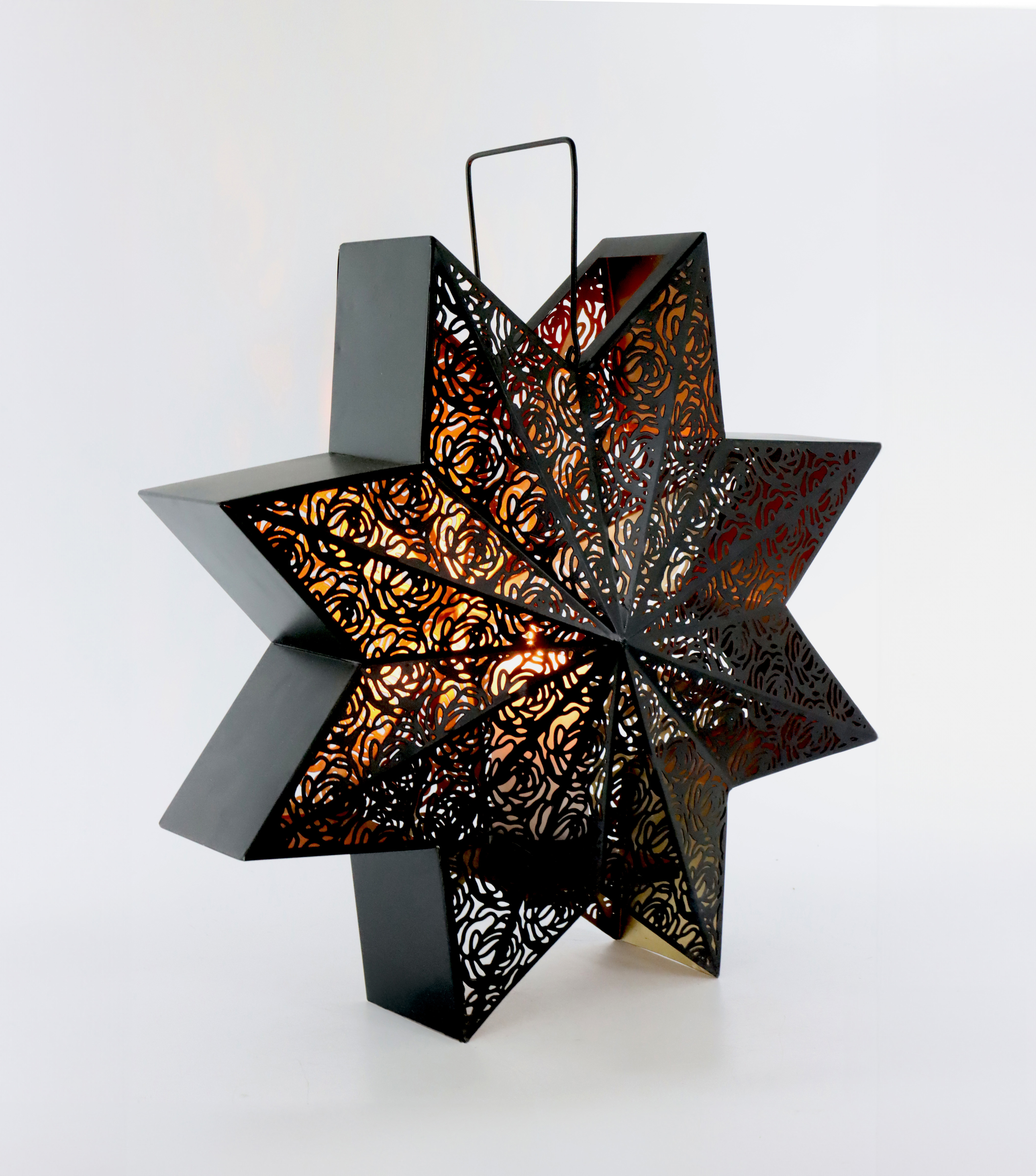 Palabras clave relevantes para SEO: linterna estrella, decoración navideña, accesorio navideño, venta al por menor, accesorio para el hogar, portavelas, producto de estilo de vida, hierro, negro, Navidad, hada navideña.