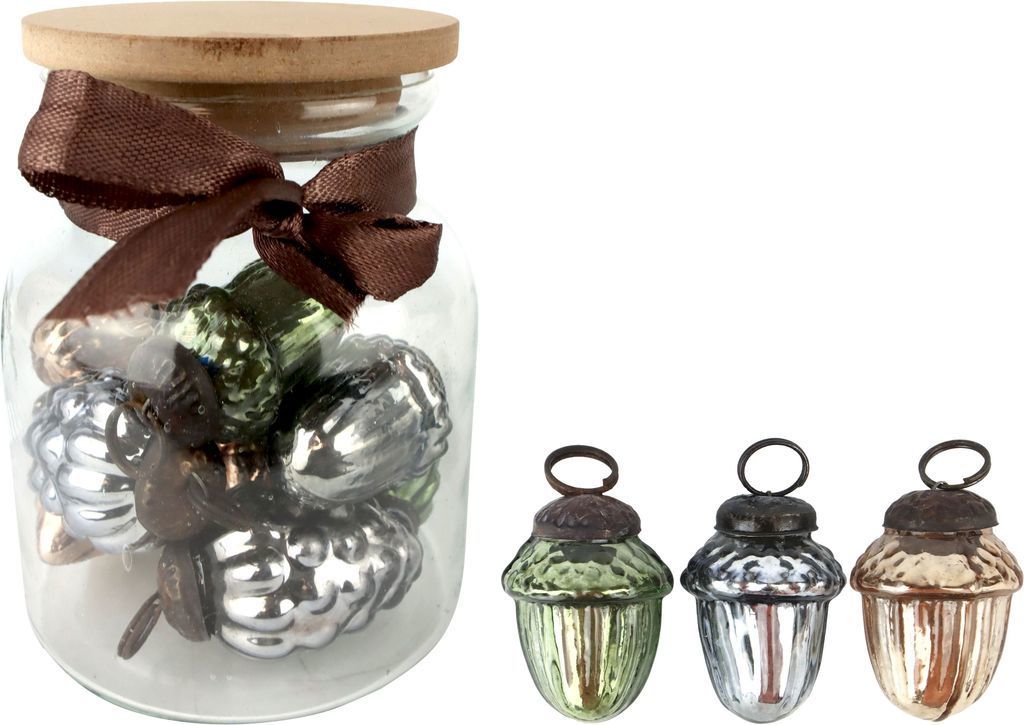Descubre nuestro exclusivo set de conos colgantes que añadirá un toque festivo y elegante a tu decoración navideña. El juego, compuesto por 13 conos de diseño artístico, se presenta en un elegante tarro de cristal que no sólo permite guardar los adornos, sino también presentarlos de forma fácil y estética. Los conos tienen los colores clásicos de la Navidad: verde, dorado y plateado, y armonizan perfectamente entre sí. Estos colores atemporales se integran sin esfuerzo en cualquier decoración navideña y crean una atmósfera mágica en su tienda o escaparate.