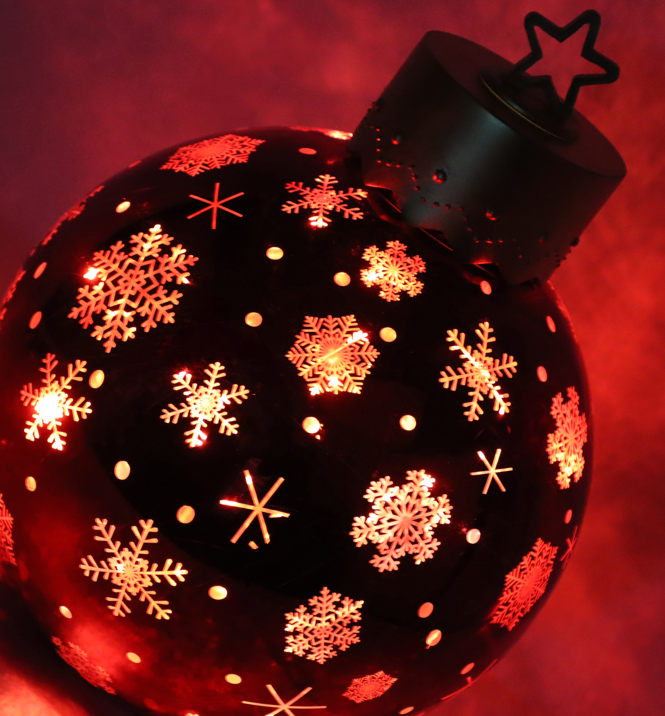 - Globo luminoso LED de 29 cm de diámetro con un diseño festivo de copo de nieve